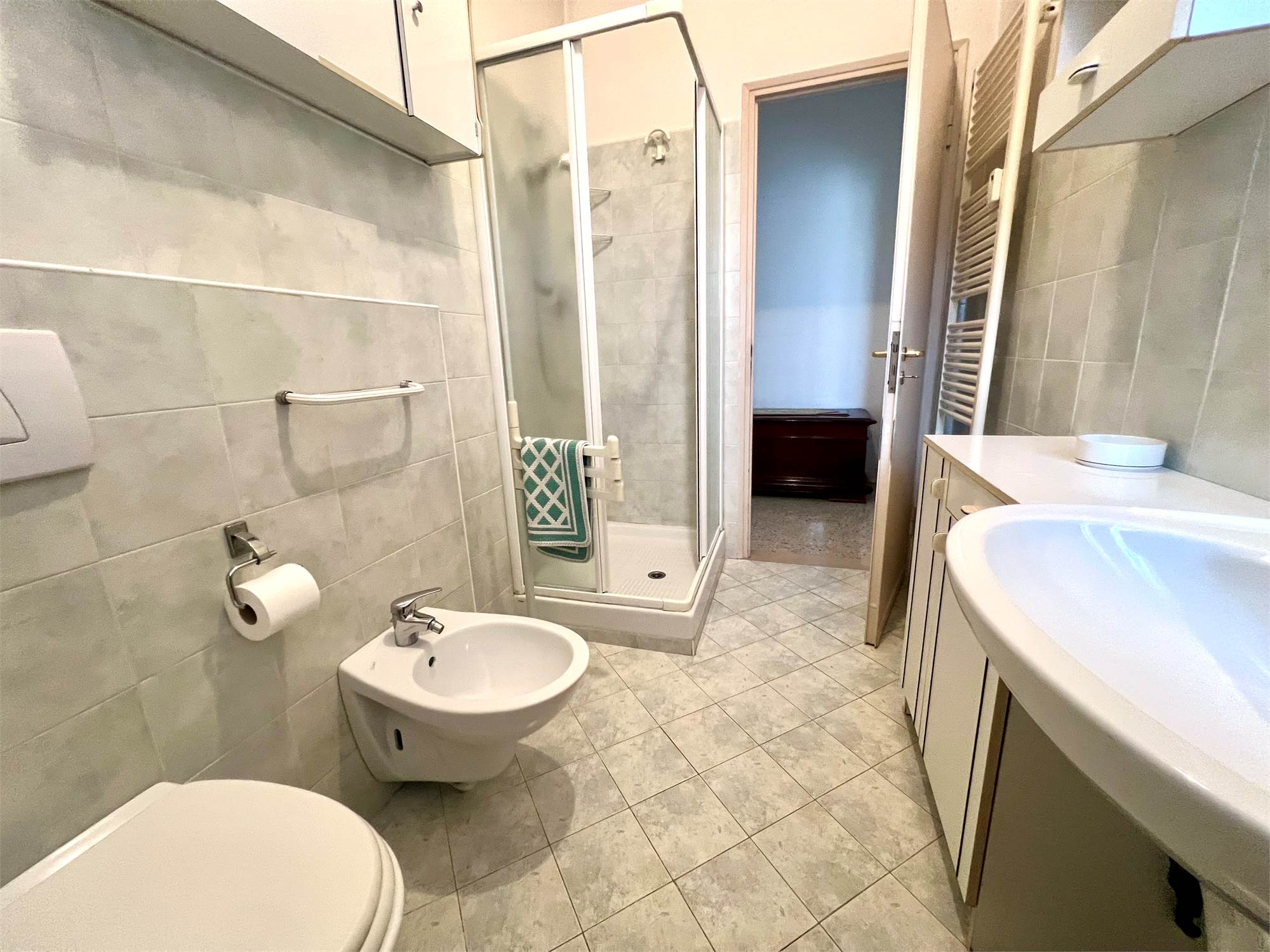 In comune con altre due stanze, l'utilizzo del soggiorno, della cucina (con frigo, forno, lavastoviglie, microonde), 2 bagni e balcone.