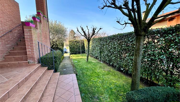Ampio giardino privato di 200 mq, ideale per far giocare i bambini all’aperto o per godersi cene in famiglia sotto il portico