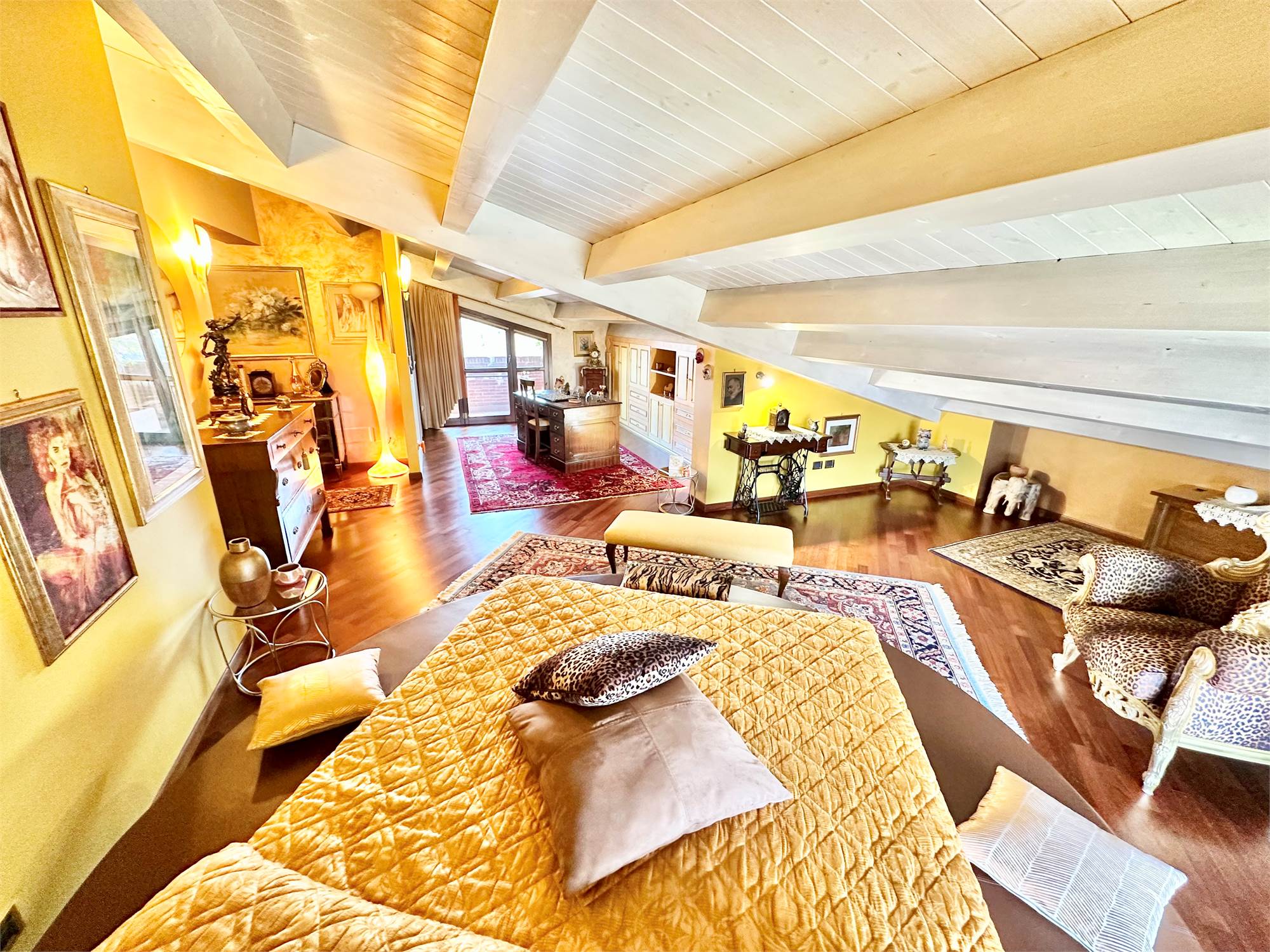 Travi in legno a vista, porte scorrevoli e termoarredo di design