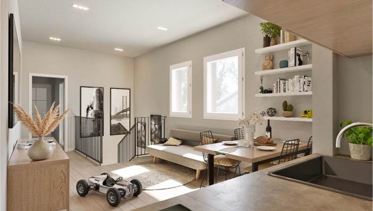 BILOCALE - Unità 2: Ingresso indipendente dalla corte interna, sito al primo ed ultimo piano, silenzioso e con gradevoli affacci sulla corte interna, composto da soggiorno con cucina a vista, camera matrimoniale di 15 mq, bagno finestrato e cantina di 9 mq.