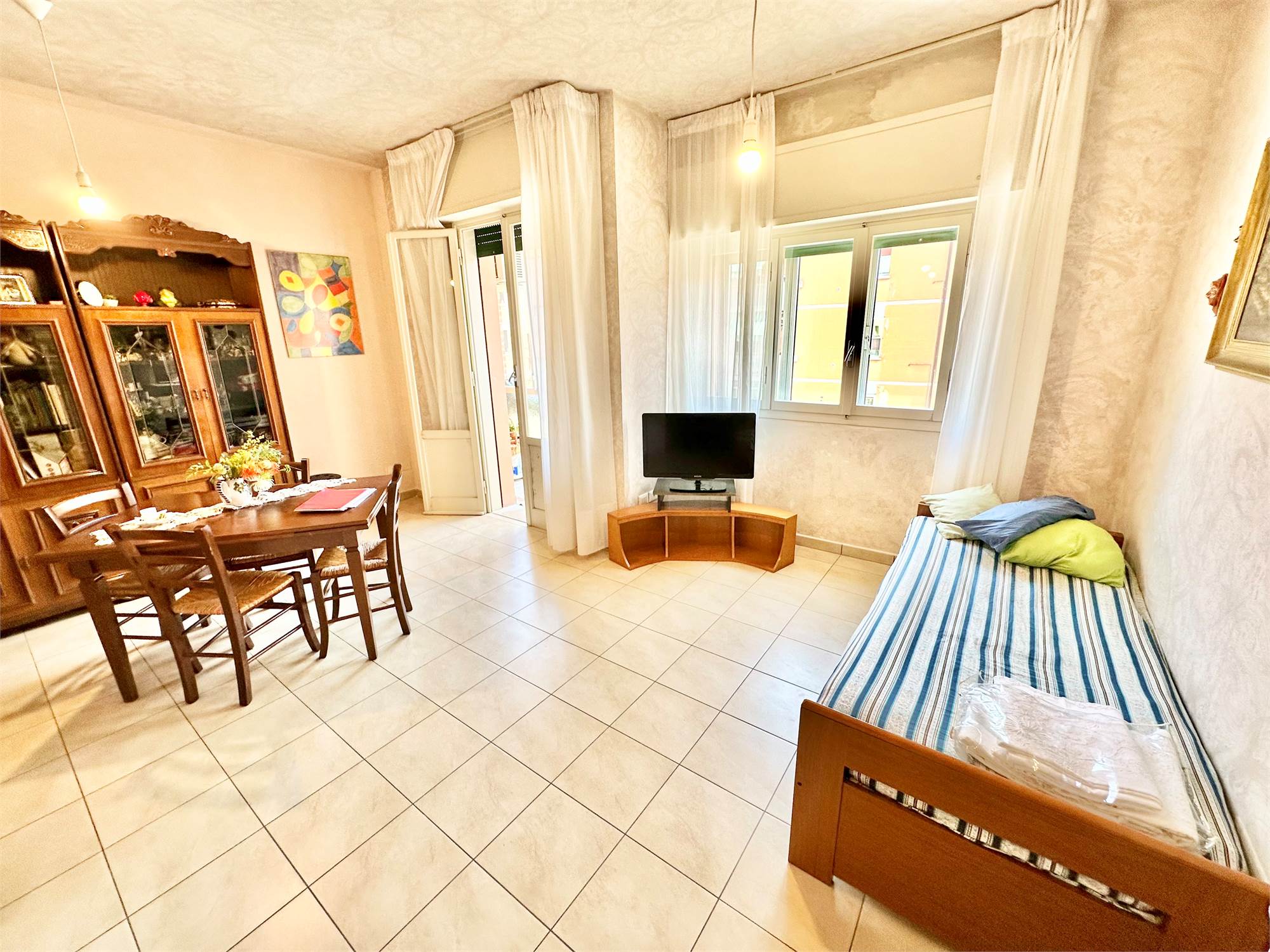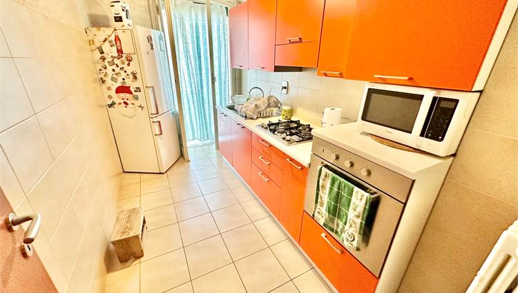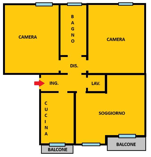 Composto da: ingresso, ampio soggiorno, cucina semi abitabile, 2 camere matrimoniali, bagno, lavanderia, 2 balconi, ampia cantina.