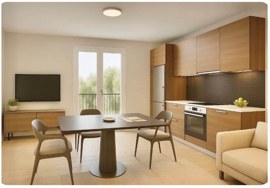 Unità 3 con Balcone: Composto da sala con cucina a vista ed accesso al balcone ( ben esposto a Sud, con affaccio sulla tranquilla corte interna), camera matrimoniale di 21 mq ( ove poter realizzare una elegante cabina armadio) stanza di 9 mq con solar Tube ( vedasi foto allegate e dettagli Tecnici in fondo all' annuncio) stanza ideale per divano letto per ospiti, zona Studio/pc, zona stiro, ginnastica/pilates/palestra ecc ecc.