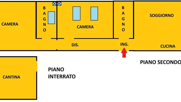 Unità 8- App.to CON TRAVI IN LEGNO A VISTA: Composto da sala con angolo cottura di 25 mq, 2 camere, 2 bagni, ampia cantina e vista sulla piacevole corte interna.