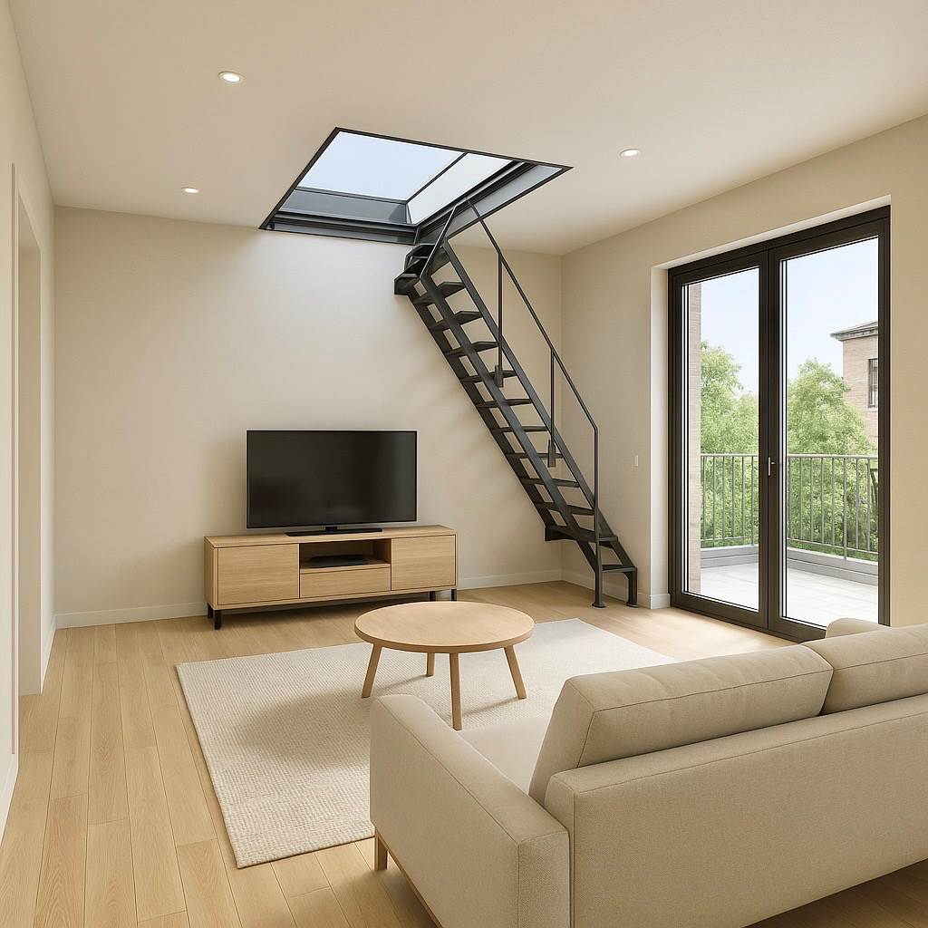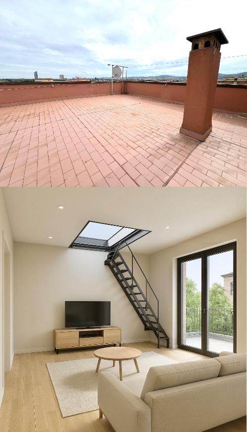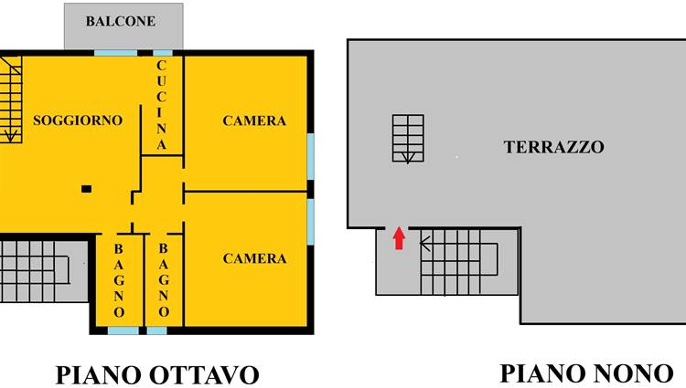 Attualmente al terrazzo si accede dal vano scale, ma è collegabile internamente come disegnato nella planimetria allegata e nel Rendering di progetto.