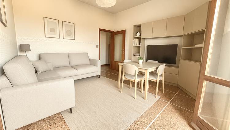 Composizione: Ingresso, Sala, cucina separata, Balcone , 2 camere matrimoniali, 2 bagni finestrati e cantina ciclabile.