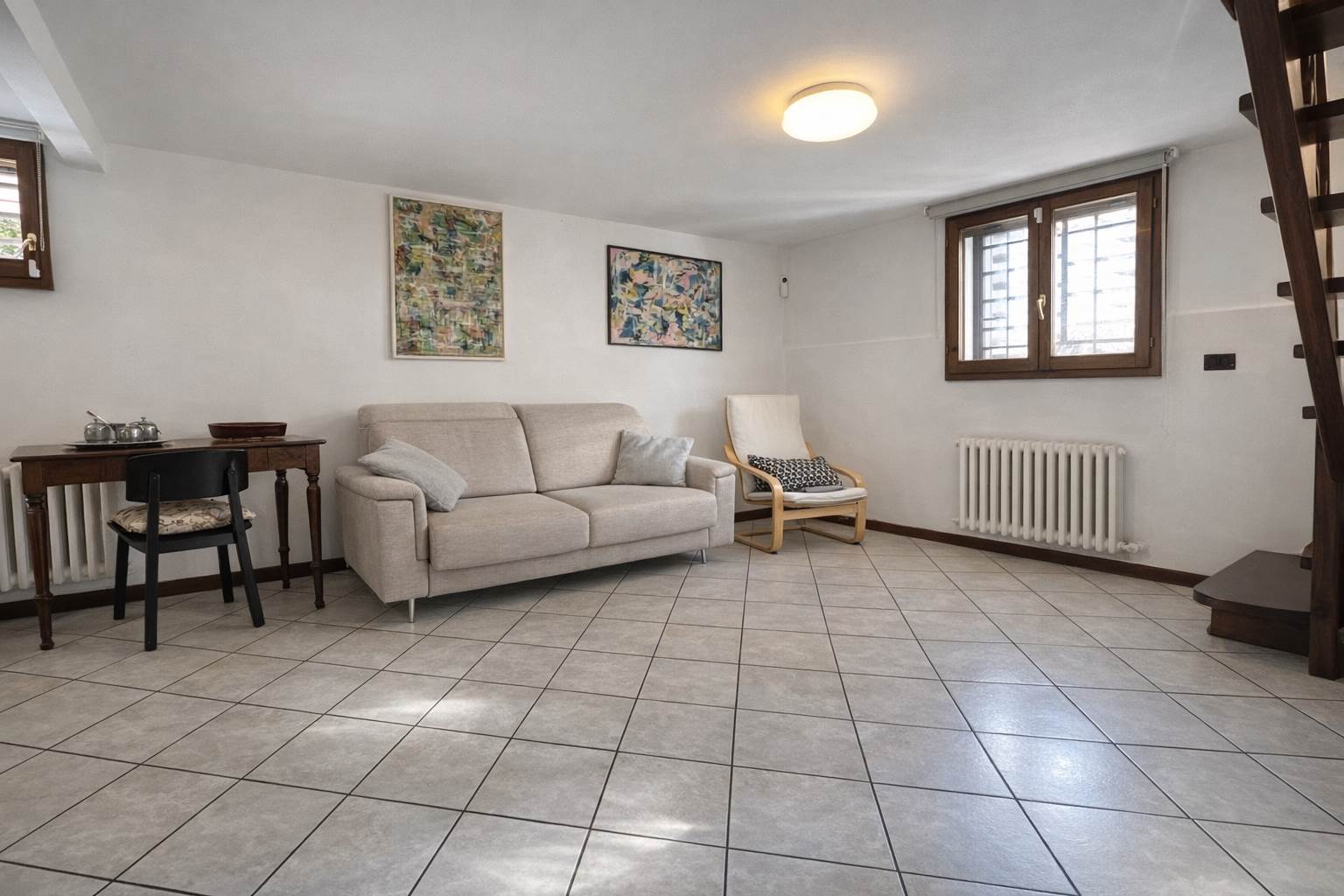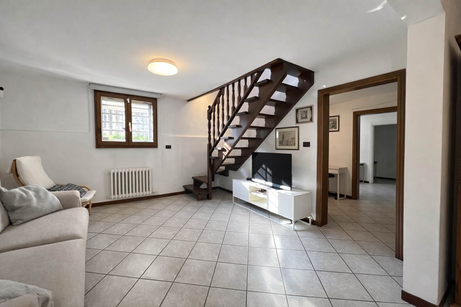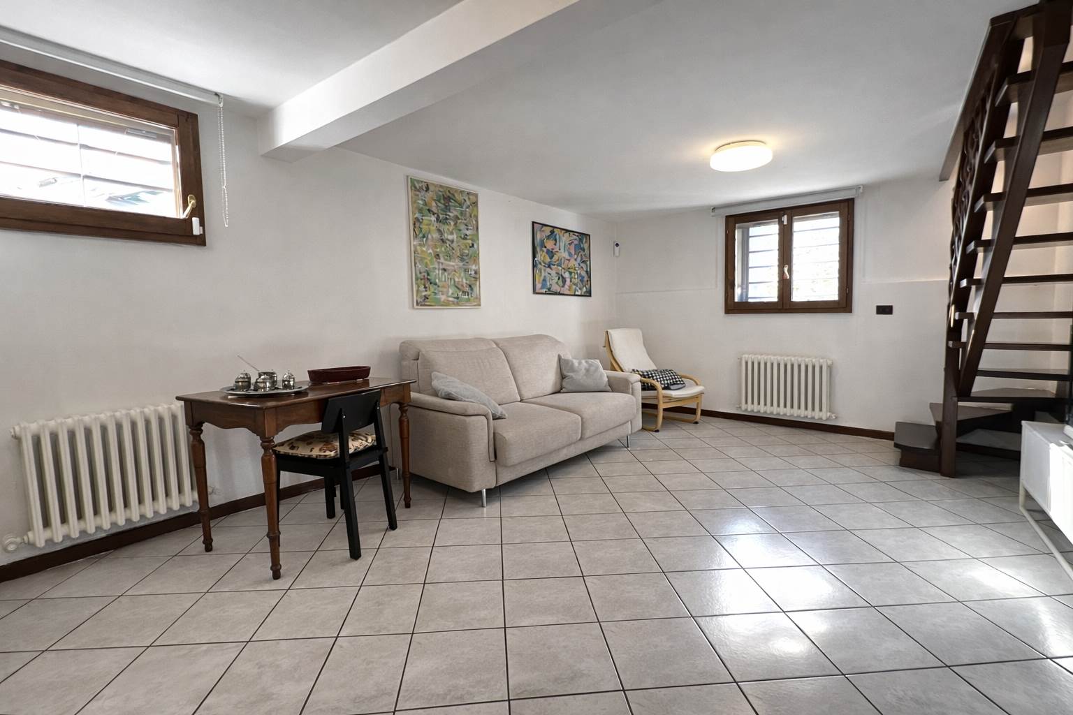 PIANO SEMINTERRATO: collegato da elegante scala in legno, uno spazio versatile e di grande fascino: