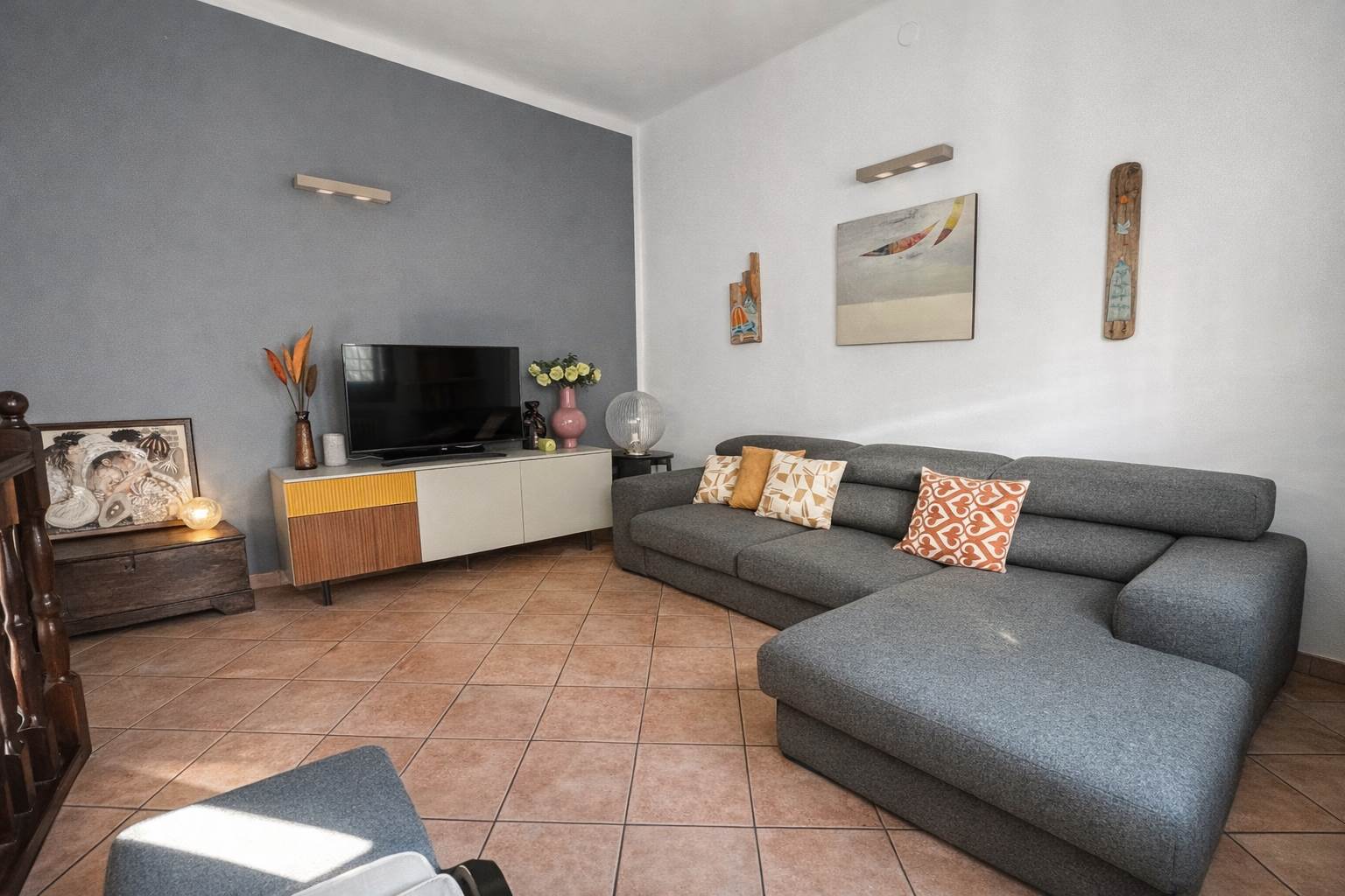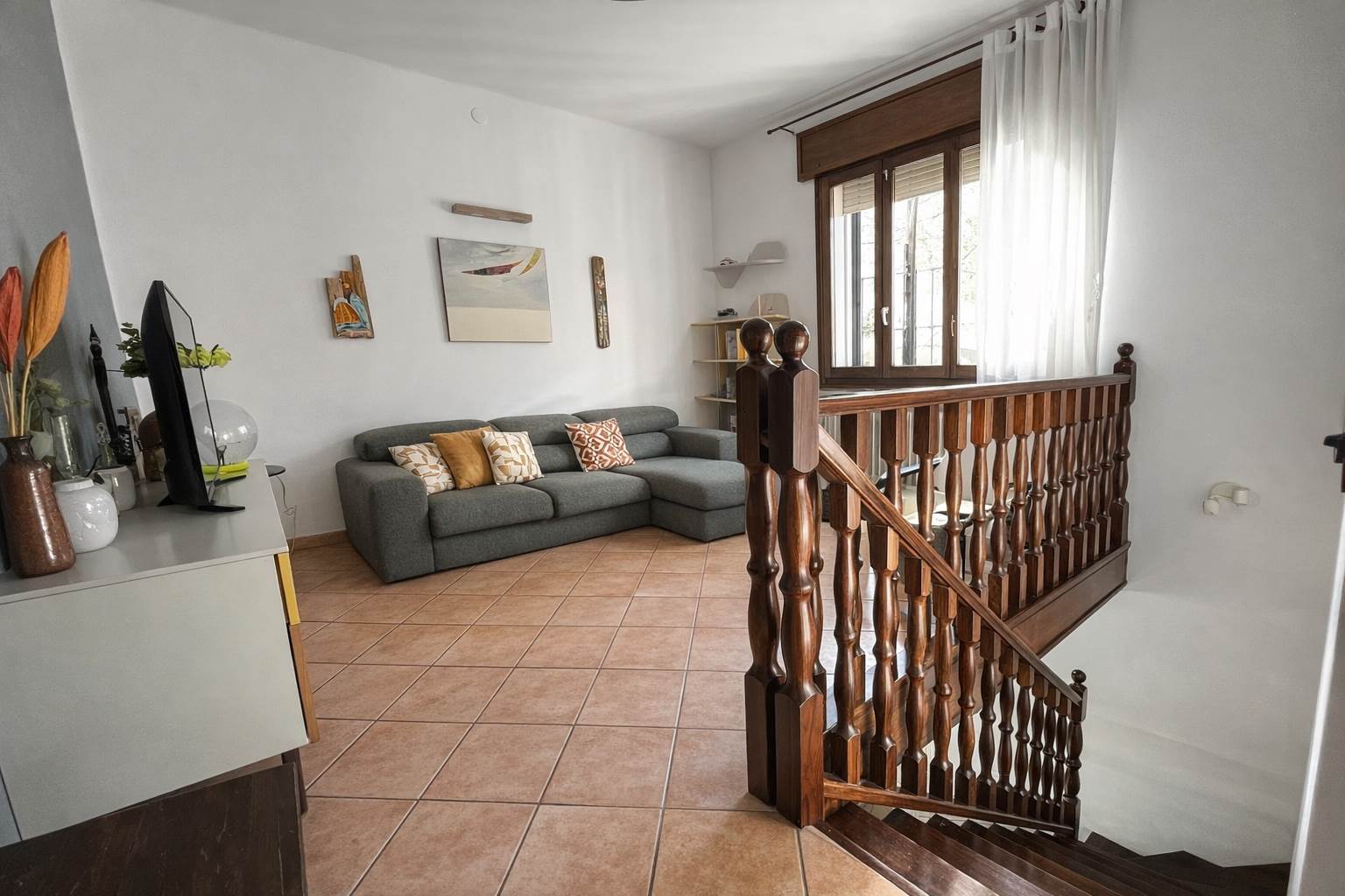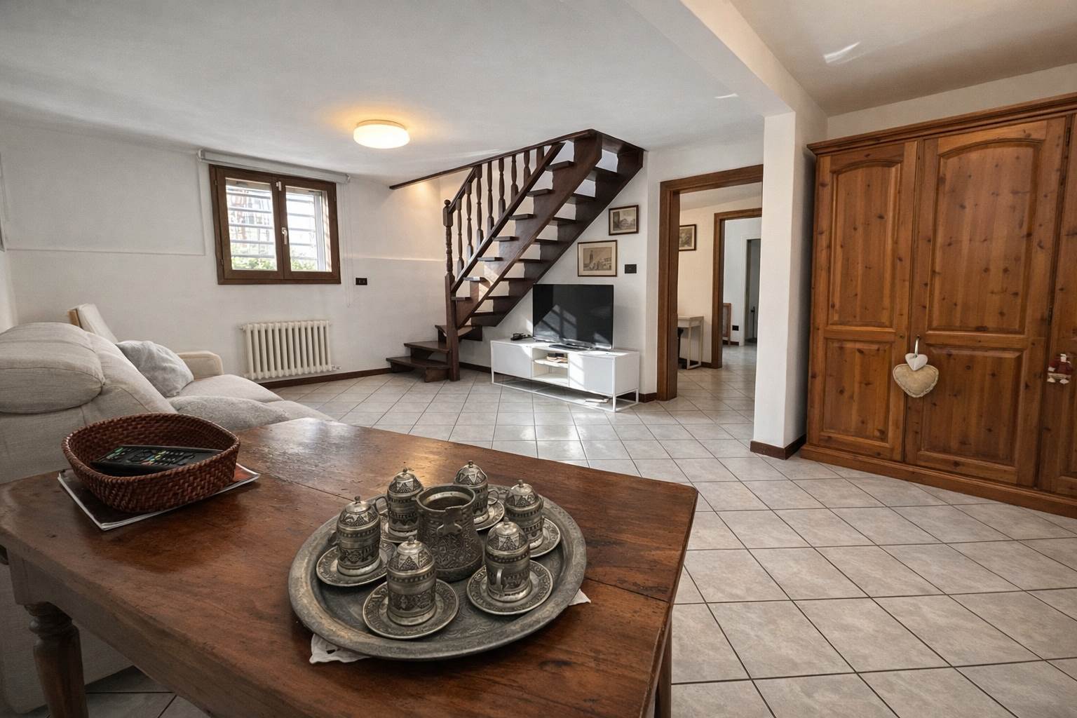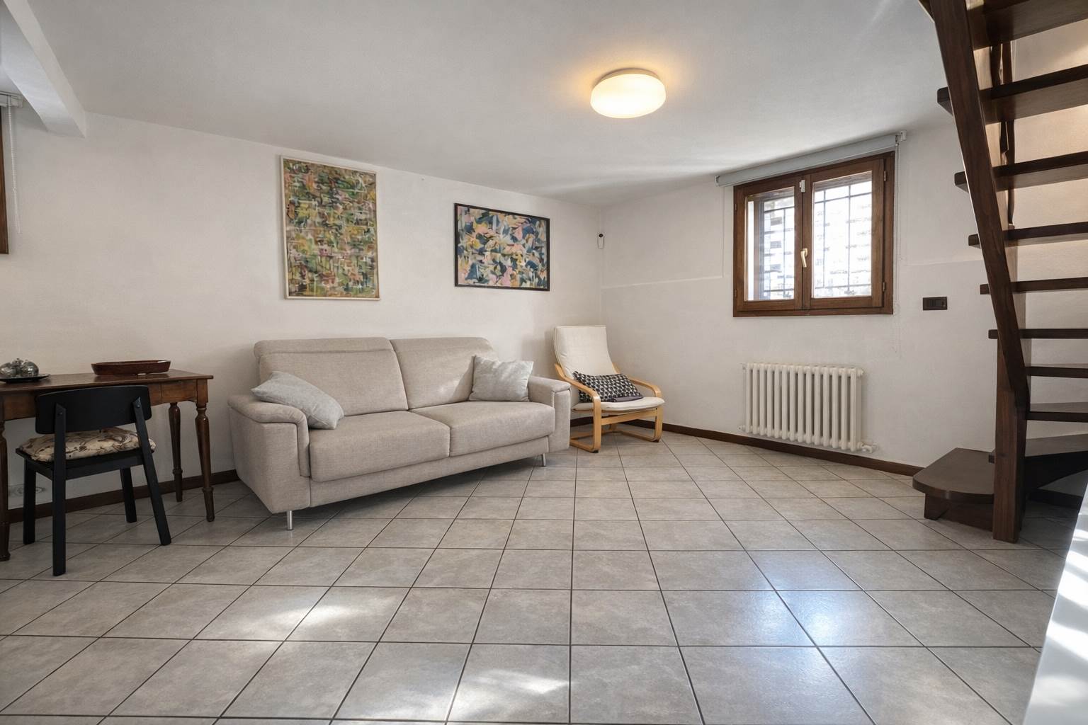 PIANO SEMINTERRATO: collegato da elegante scala in legno, uno spazio versatile e di grande fascino: