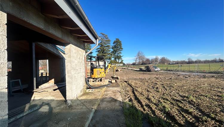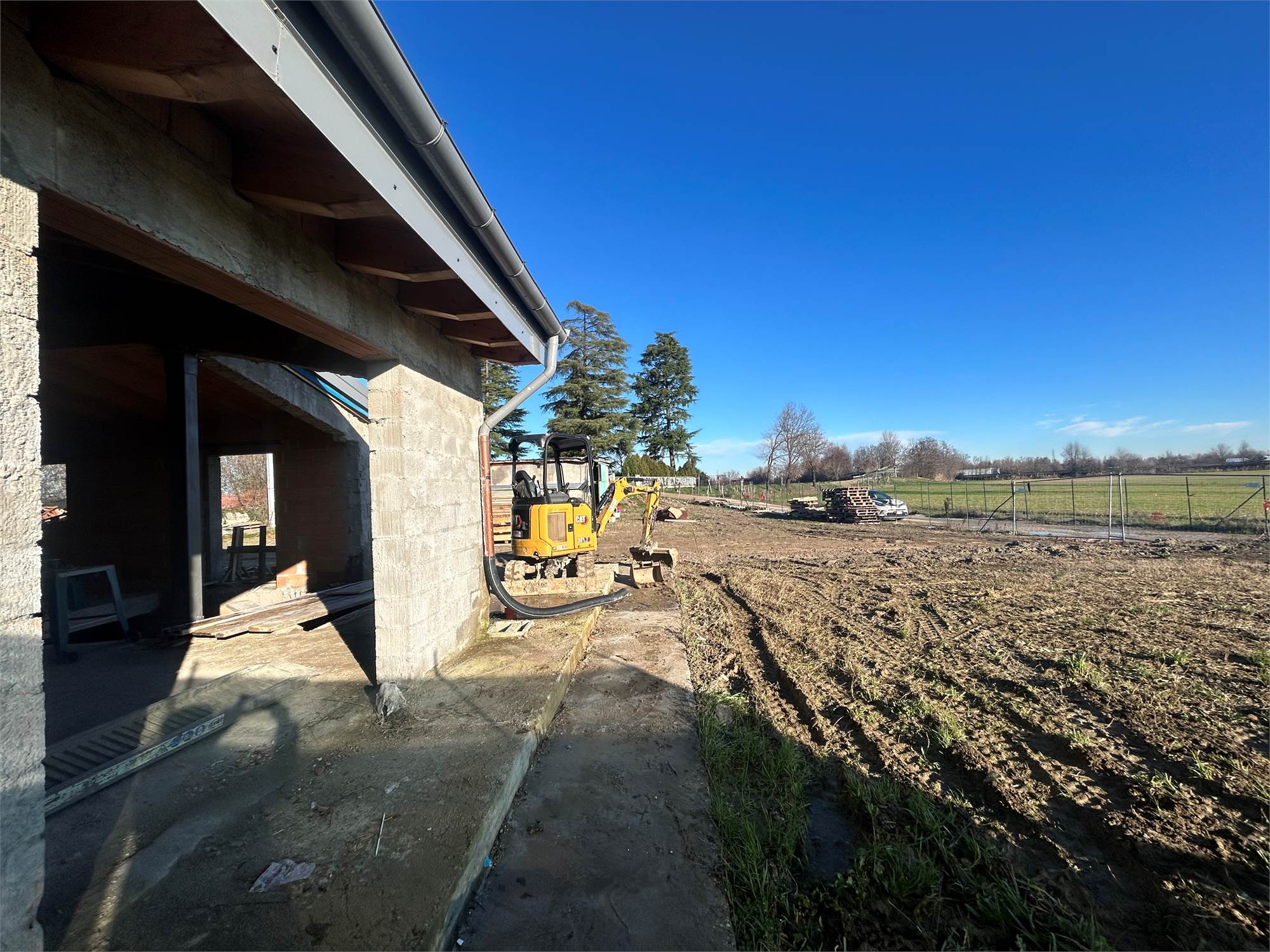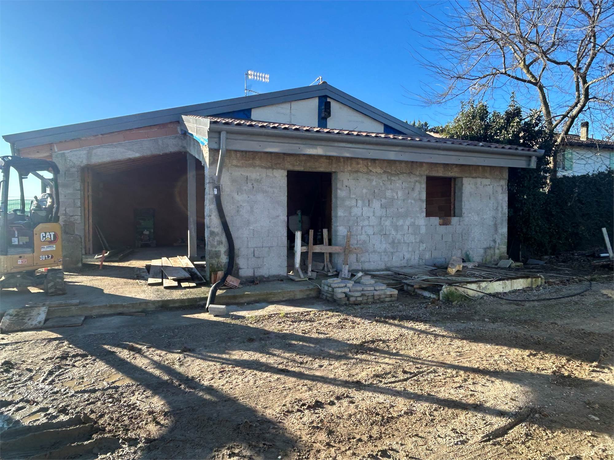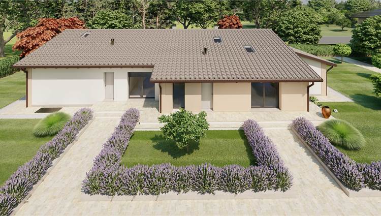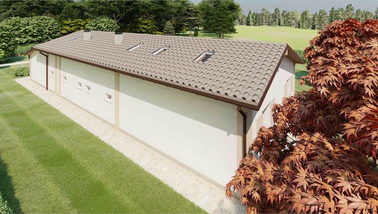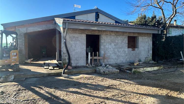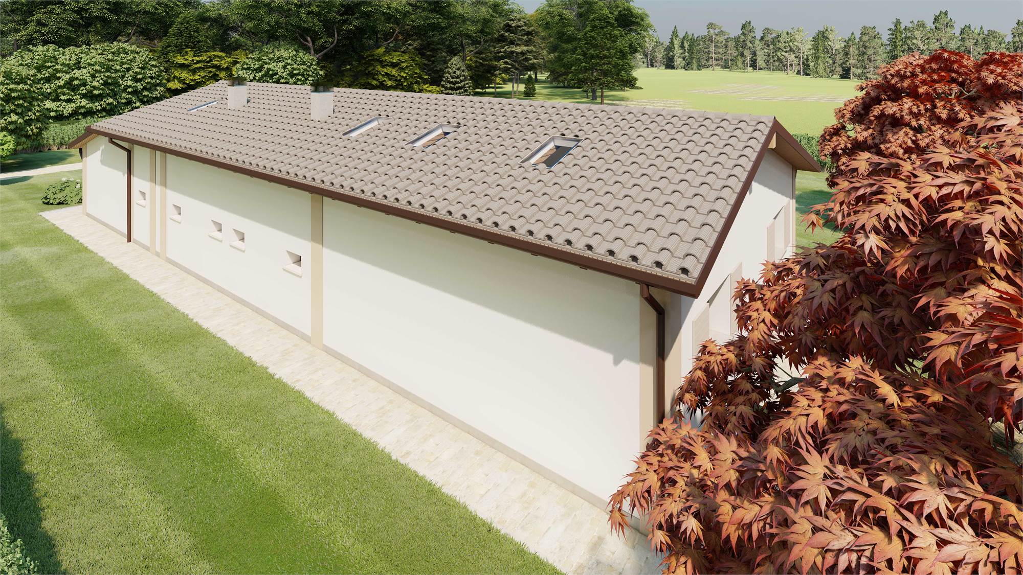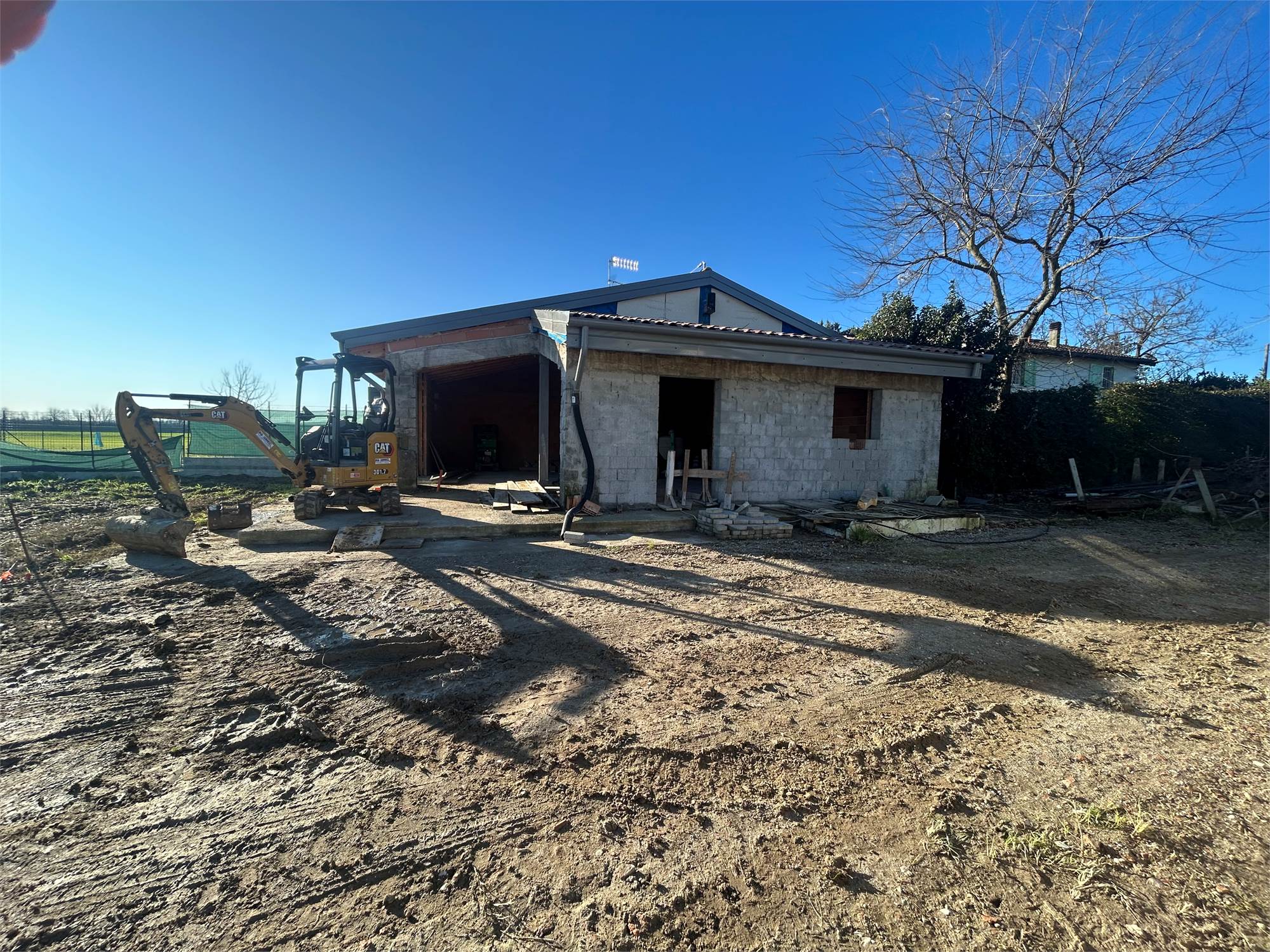 La villetta, attualmente allo stato grezzo, viene venduta completamente finita ed è composta da ampia zona giorno living di salotto con cucina a vista di 46 mq calpestabili, due camere da letto, 2 bagni, ripostiglio, vano tecnico con alloggiamento impianti, autorimessa di 34 mq e giardino privato di circa 600 mq. Completa la proprietà un fabbricato accessorio di circa 46 mq interamente disposto al piano terra che verrà venduto completamente finito esternamente ed allo stato grezzo interno.