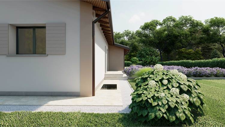 Impianto fotovoltaico di 3 kw con predisposizione per batterie di accumulo, predisposizione antifurto, sanitari sospesi, impianto di riscaldamento a pavimento, predisposizione per aria condizionata, cappotto esterno, pavimenti in gres porcellanato formato 60x60 o effetto legno listone formato 20x120, rivestimento bagni in gres porcellanato.