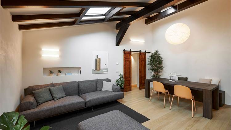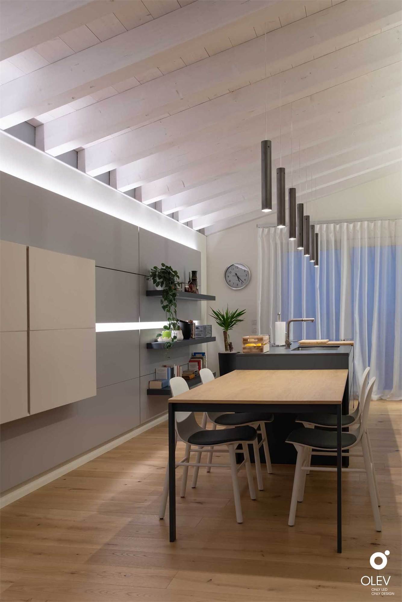 Nuova porzione di villa bifamigliare, posizionata nella prima campagna di Ozzano dell'Emilia, realizzata con design moderno dove i soffitti a doppi volumi in travi di legno a vista si abbinano gradevolmente a facciate con inserti in vetrate che donano luminosità, eleganze ed unicità all'immobile.