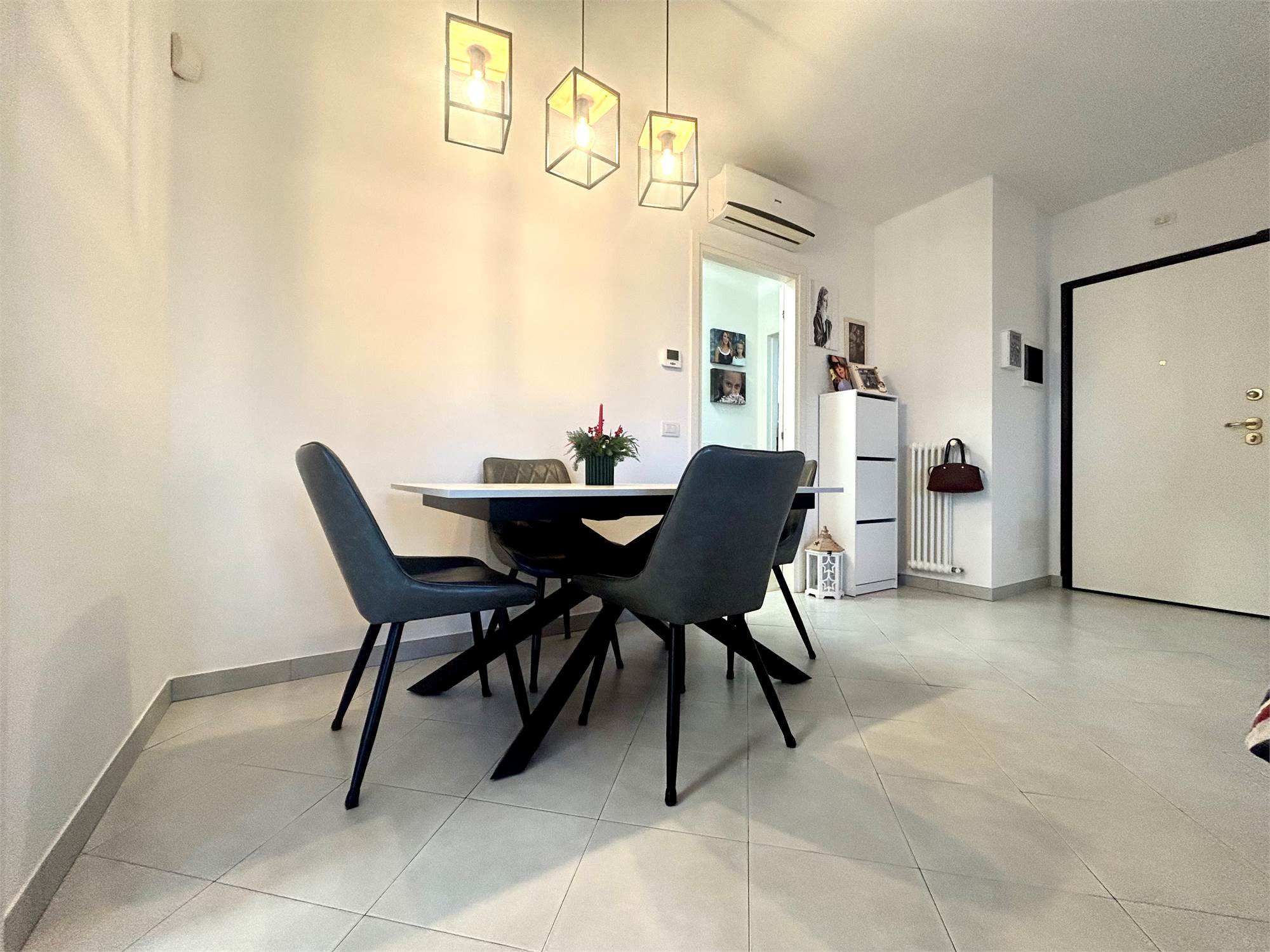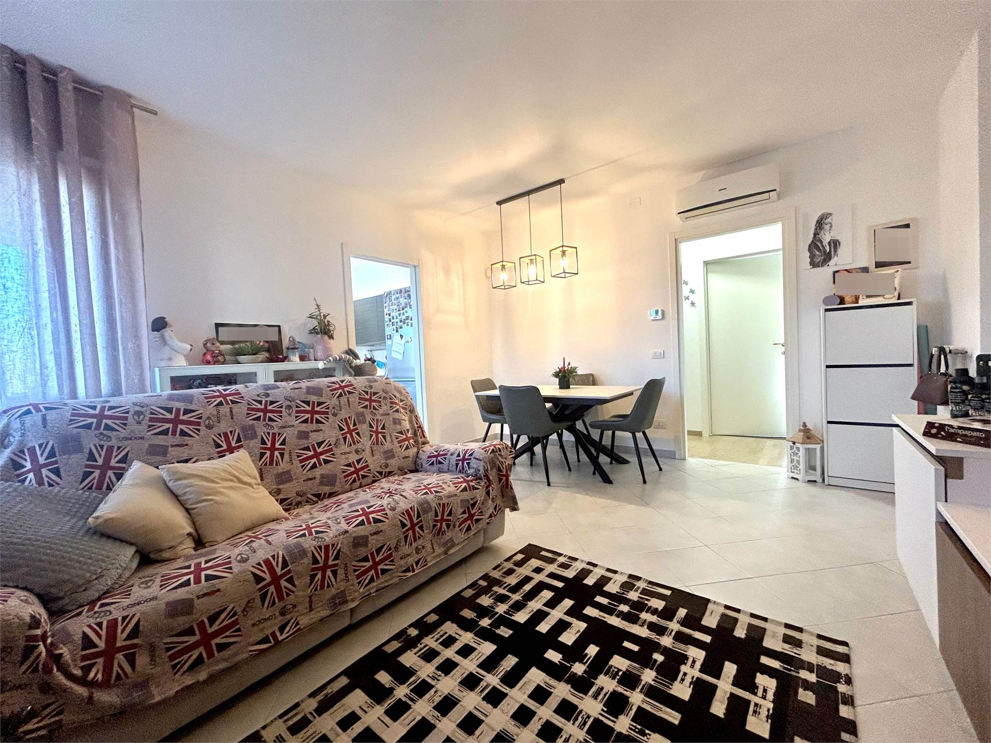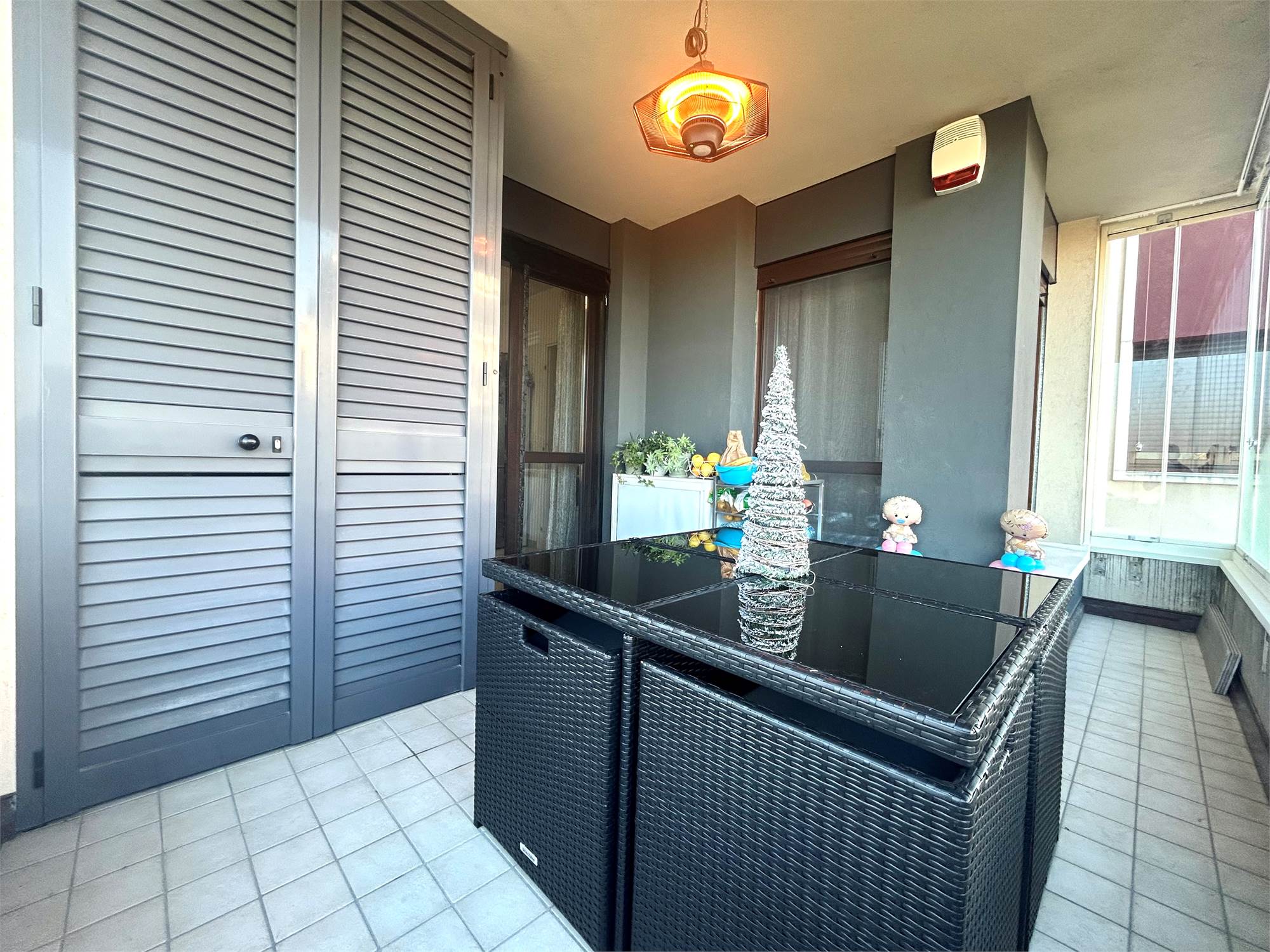 Pavimenti in gres porcellanato, porta blindata, videocitofono, cancelletti di sicurezza con predisposizione allarme, aria condizionata, infissi in legno con doppi vetri, zanzariere, cappotto esterno.
