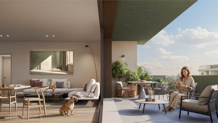 L'appartamento è composto da ampio salotto di 30 mq con accesso alla terrazza coperta di 24 mq un vero e proprio ampliamento della zona living, cucina abitabile, disimpegno, 3 camere da letto, 2 bagni finestrati, locale lavanderia oltre a comoda cantina al piano ed autorimessa di 18 mq compresa nel prezzo.