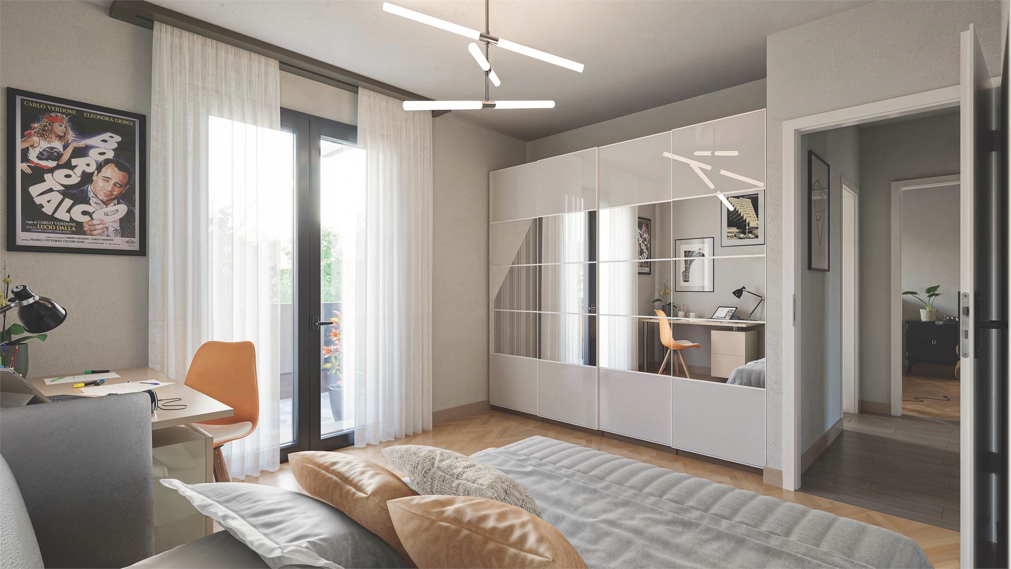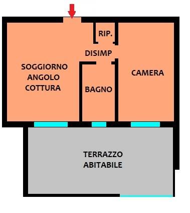 L'appartamento è composto da da soggiorno con angolo cottura, disimpegno, camera da letto matrimoniale, bagno e terrazza abitabile di oltre 26 mq. Possibilità di acquistare autorimessa o cantina a parte.
