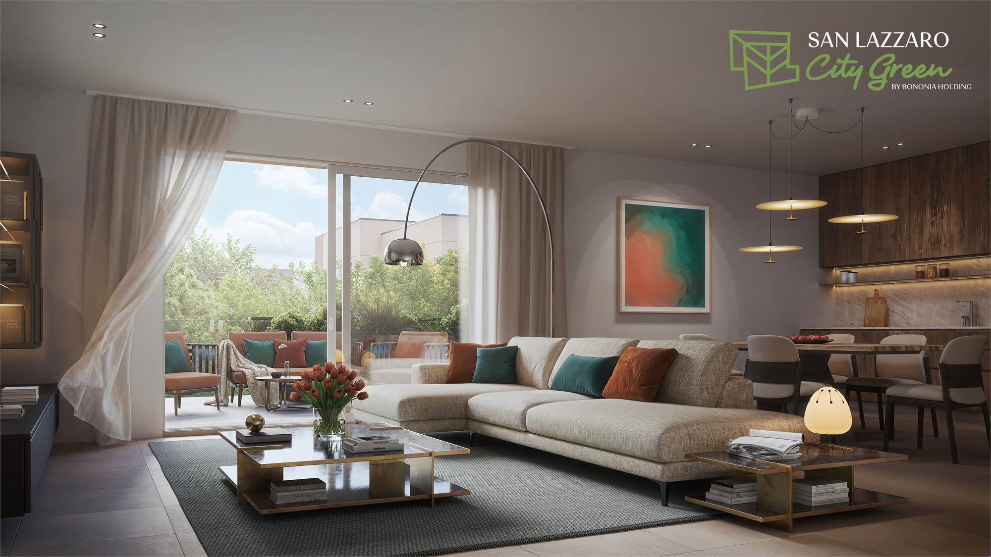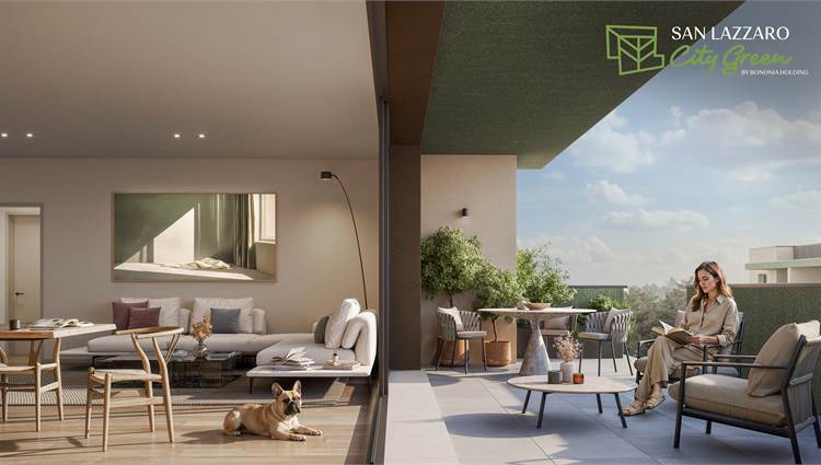 L'appartamento è inserito in una piccola palazzina facente parte di un nuovo comparto di rigenerazione urbana inserito all’interno di un vero e proprio parco alberato che formerà un grande giardino unico annesso alla struttura ambientale esistente con spazi privati e comuni di alta qualità.L’accesso al comparto sarà favorito dalla realizzazione di nuovi percorsi pedonali e ciclabili che consentiranno agli abitanti del nuovo residence “San Lazzaro City Green” di beneficiare di comodi collegamenti al tessuto esistente, raggiungendo a 250 mt la via Emilia dove si concentrano le principali attività commerciali e raggiungendo a soli 350 mt la fermata autobus, a 750 mt la farmacia, a 1,2 Km la scuola materna.