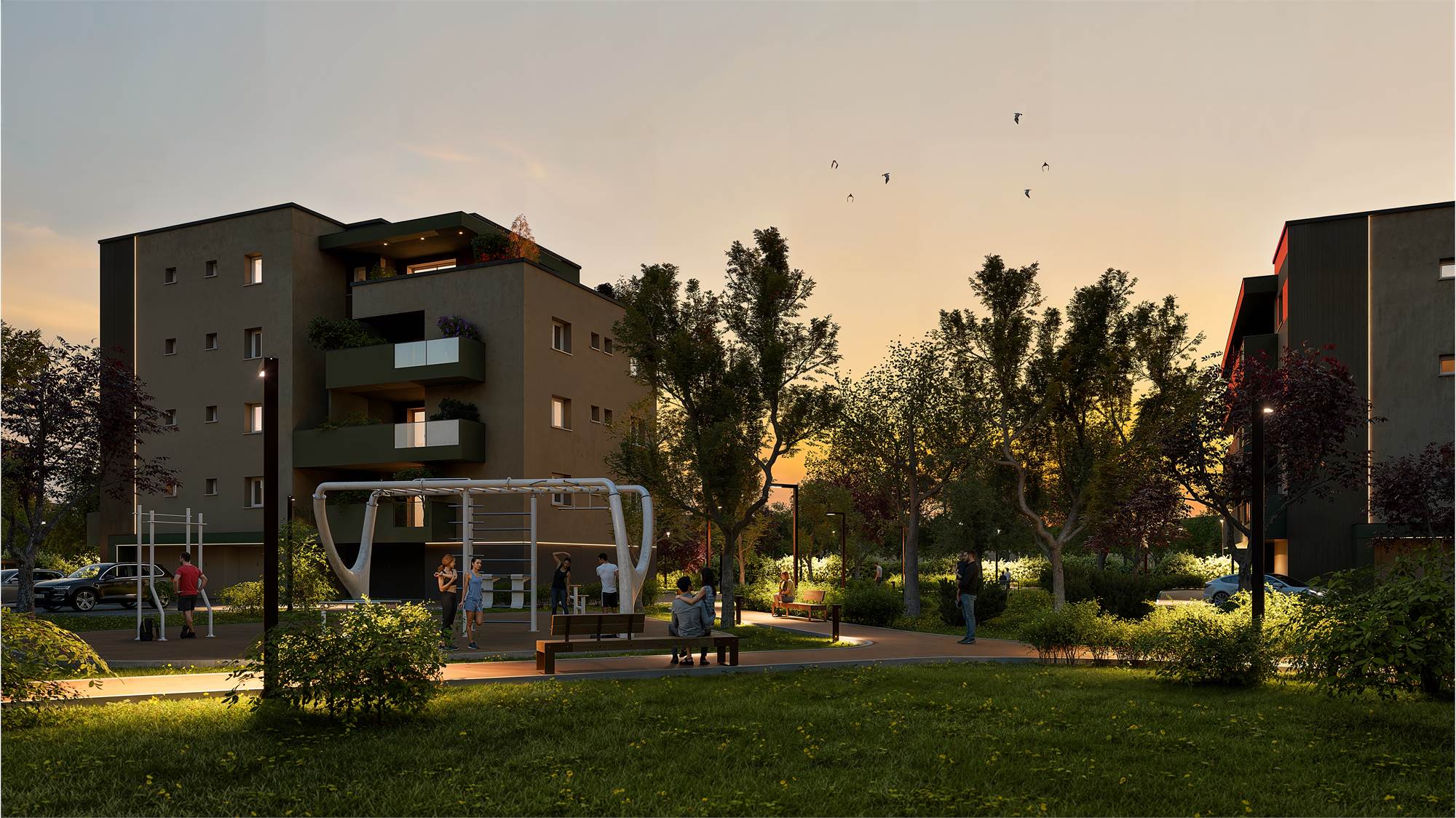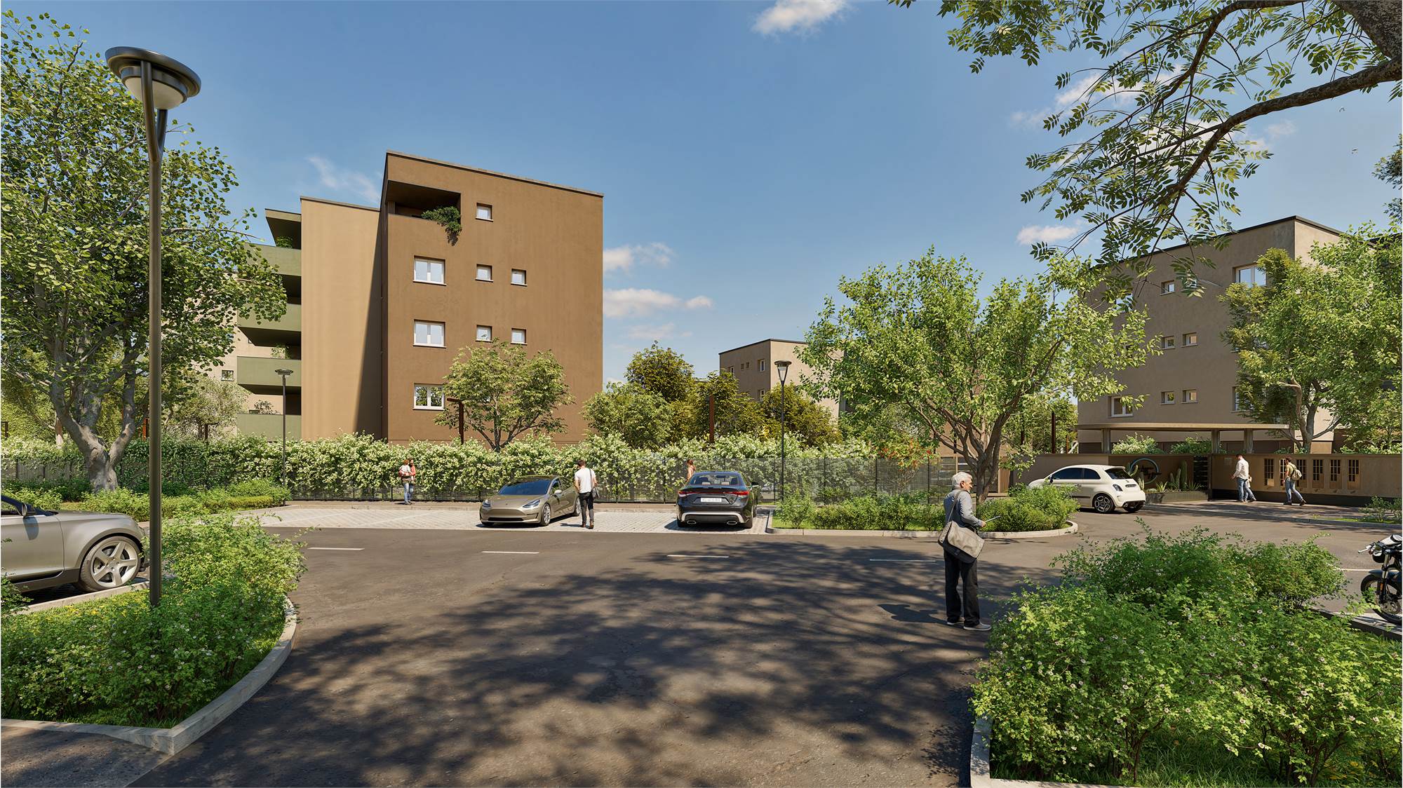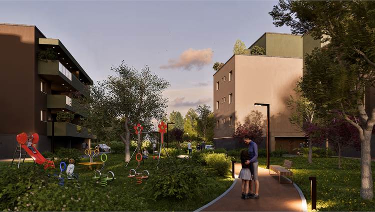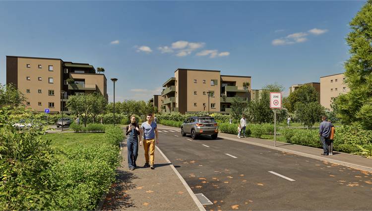 La progettazione delle nuove abitazioni e del comparto abitativo ove si inseriranno sono state pensate per fornire uno standard alto di vivibilità (saranno utilizzate le migliori tecnologie per risparmio energetico degli edifici) con attenzione particolare alla cornice di verde che non rimarrà solo un elemento decorativo secondario ma diverrà elemento fondamentale della rigenerazione, andando a creare superfici erbose che si uniranno all’area di vegetazione spontanea che affianca le nuove abitazioni, dove è presente una rigogliosa macchia di vegetazione spontanea generata da un ex vivaio. Le nuove abitazioni saranno pertanto inserite in una vera e propria infrastruttura verde che fungerà da POLMONE VERDE CENTRALE per la mitigazione degli effetti climatici attraverso la permeabilità del terreno, la piantumazione di circa 280 nuovi alberi e la salvaguardia di circa 87 alberi esistenti.