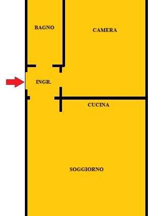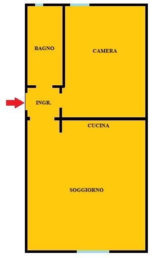 Ingresso su soggiorno con cucina a vista, ampia camera matrimoniale, Bagno finestrato e cantina al piano interrato
