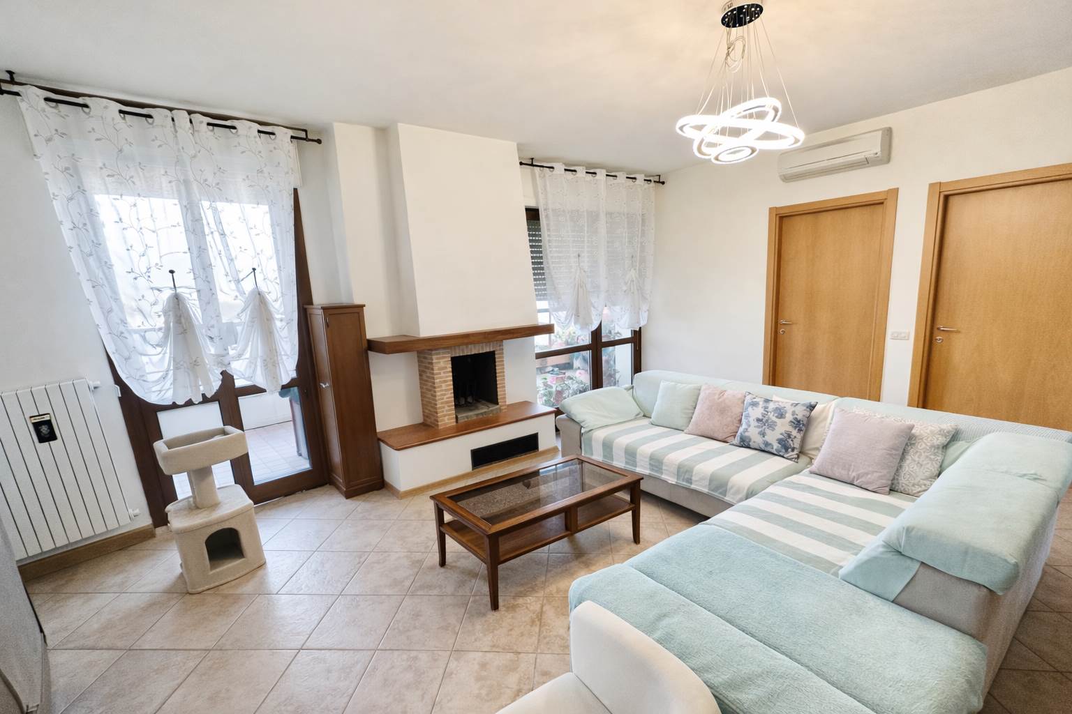 Finiture: Riscaldamento autonomo, climatizzatore, porta blindata, video citofono, camino, sanitari sospesi, parquet zona notte, infissi in legno con vetrocamera, predisposizione impianto d'allarme.