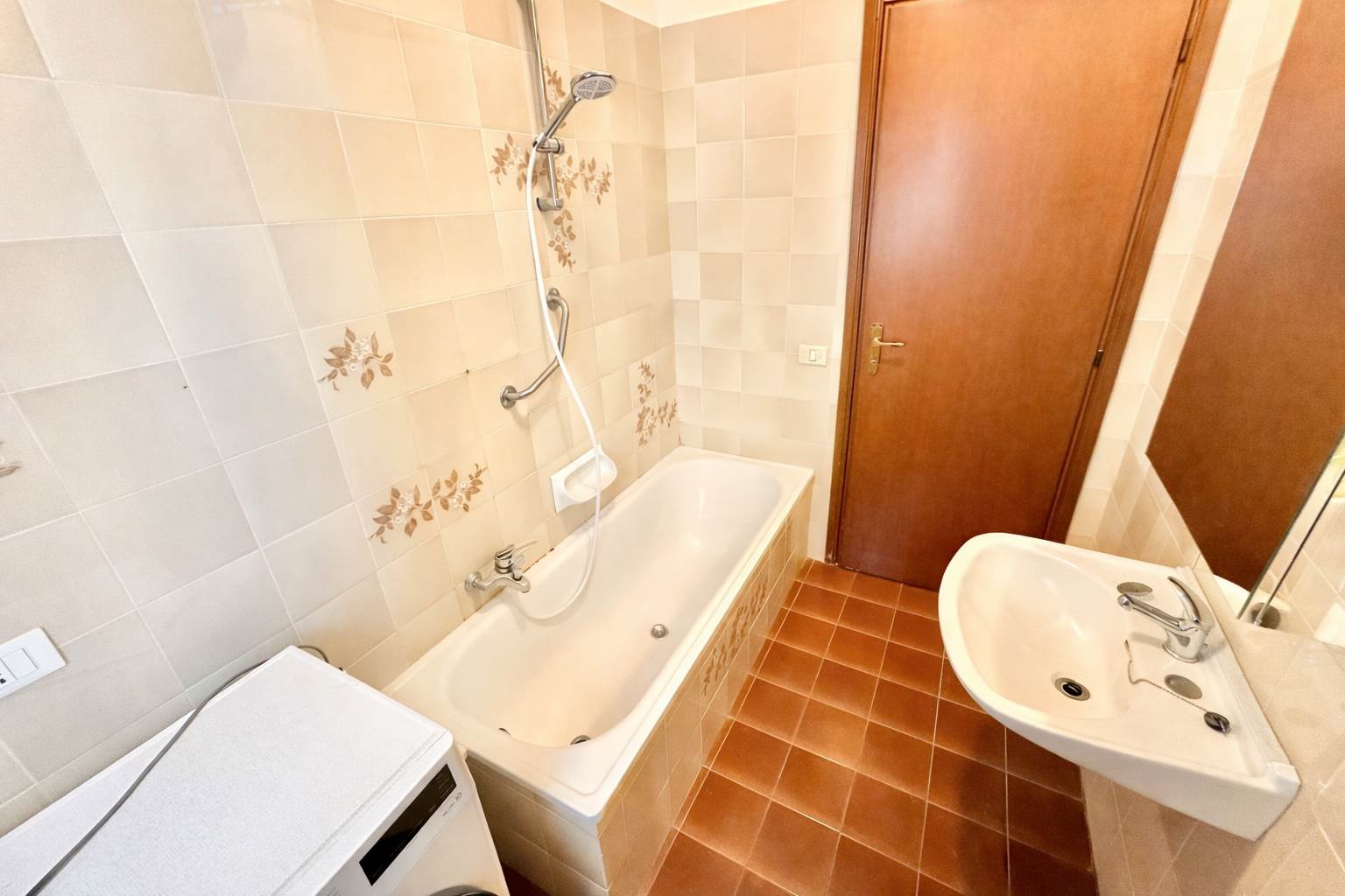 Sia il soggiorno che la cucina hanno accesso diretto al terrazzo abitabile coperto, ideale per pranzi all’aperto o momenti di relax.