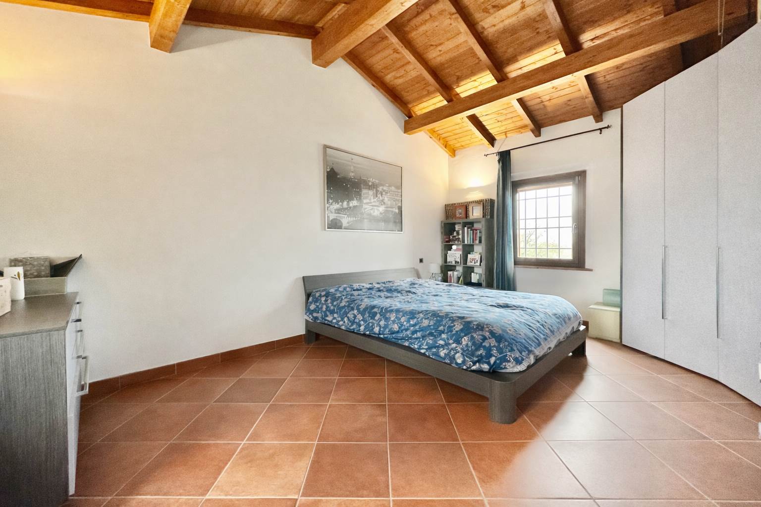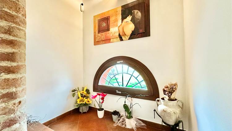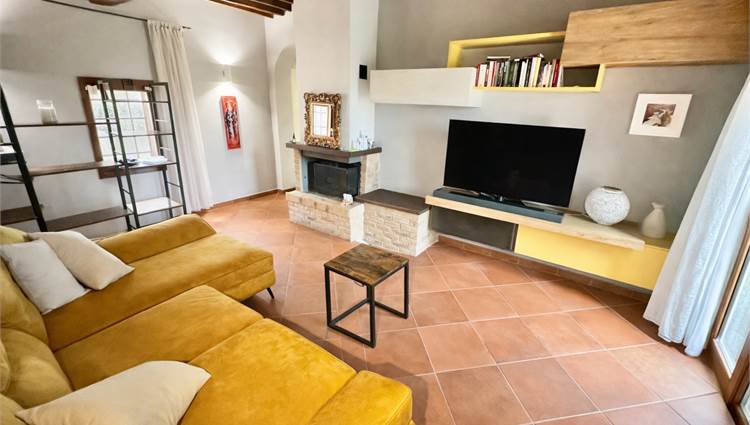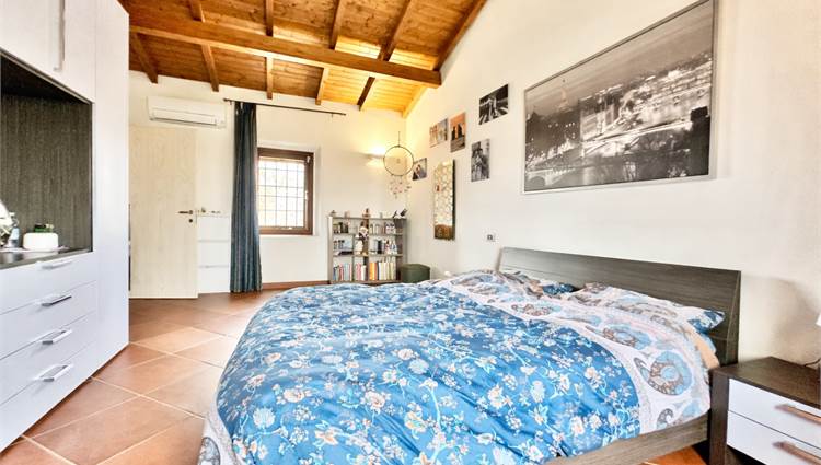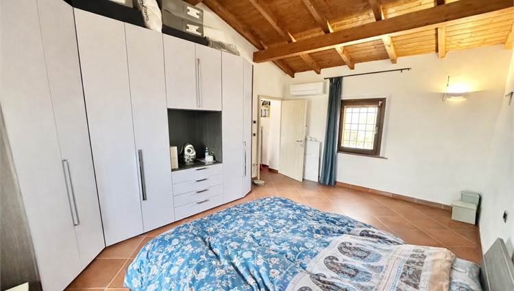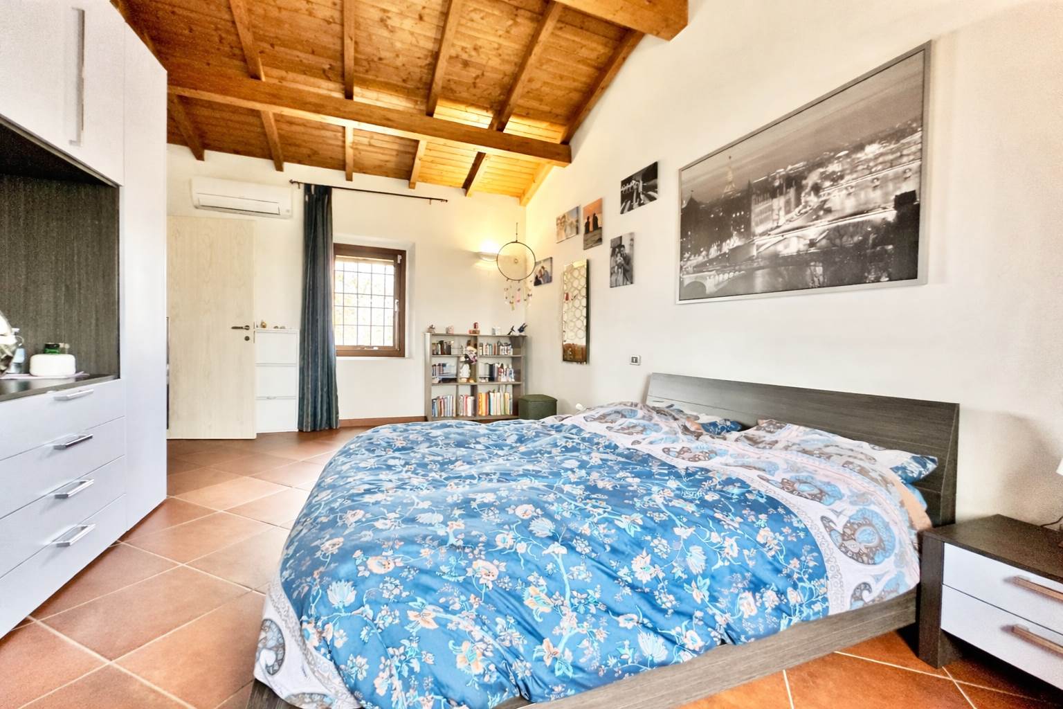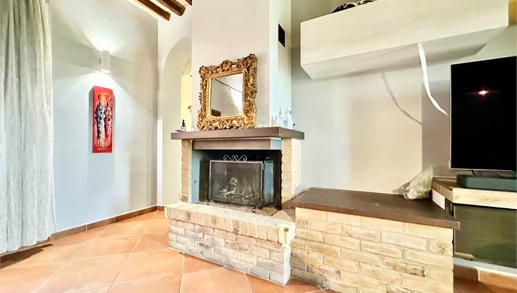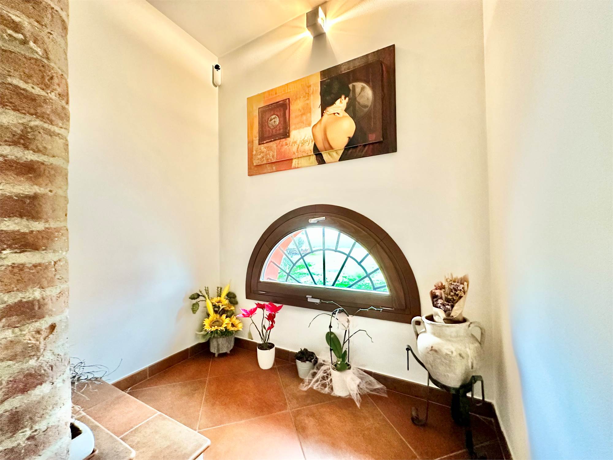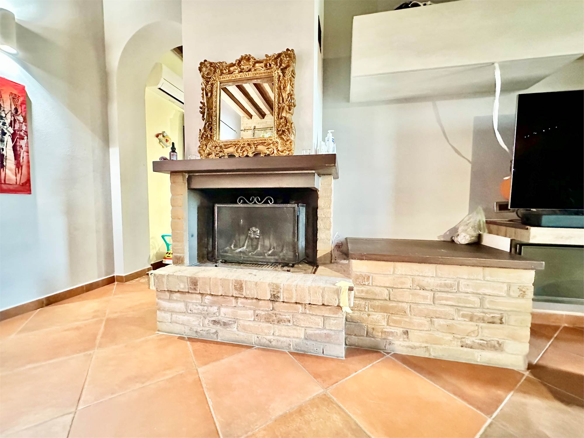 La casa è rifinita con grande attenzione ai dettagli: travi in legno a vista, porte scorrevoli di design, porta blindata, inferiate, zanzariere e camino.