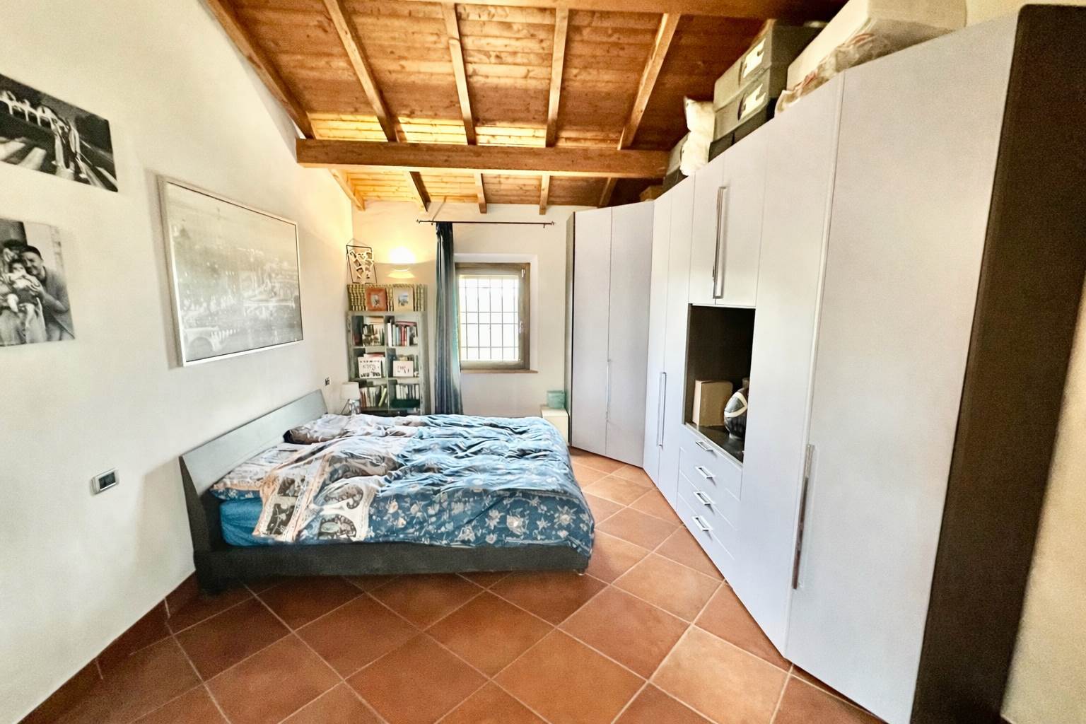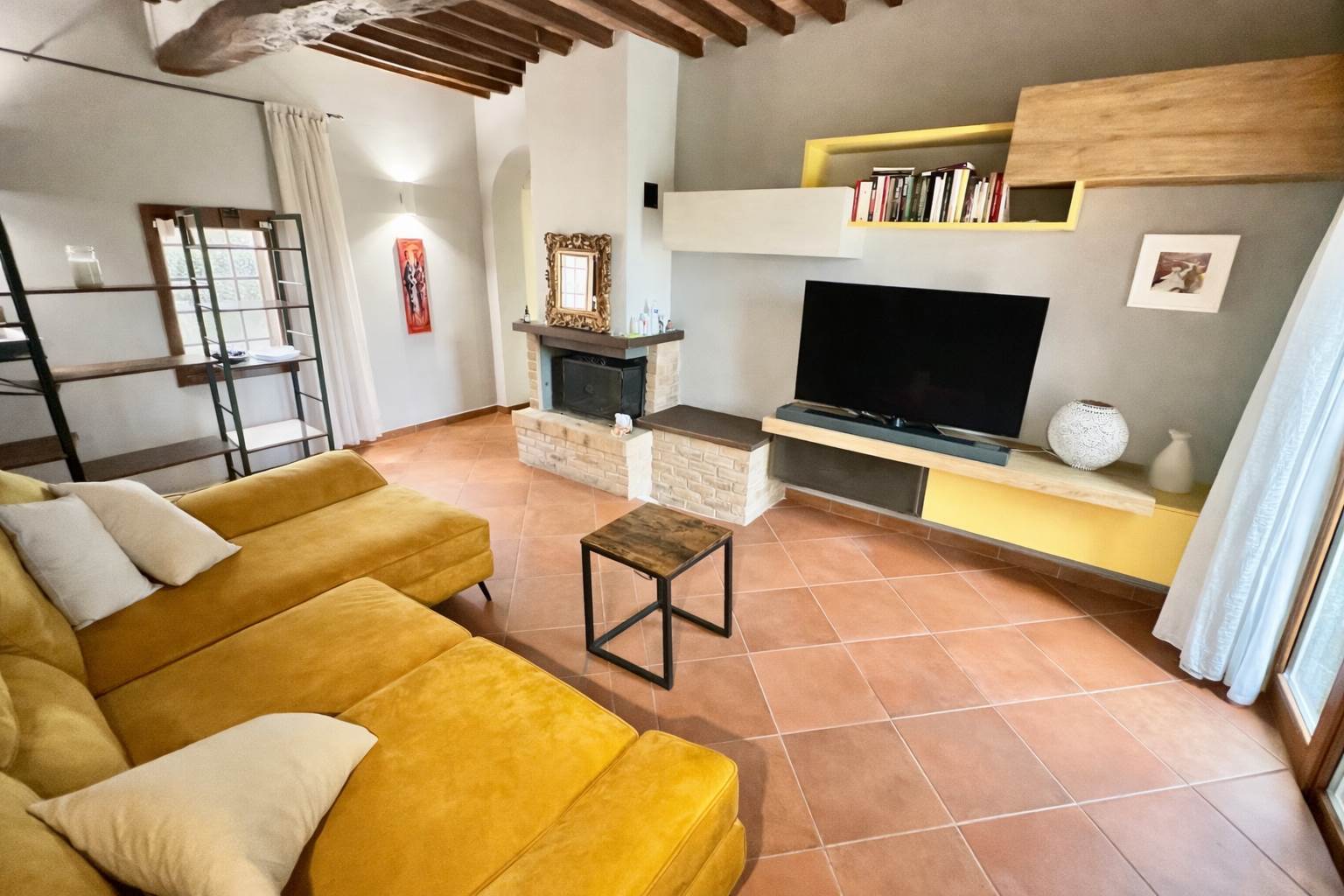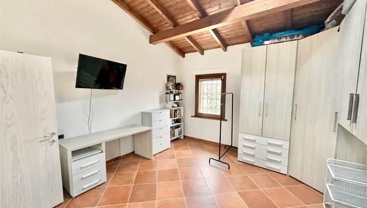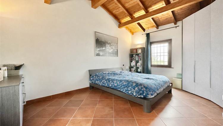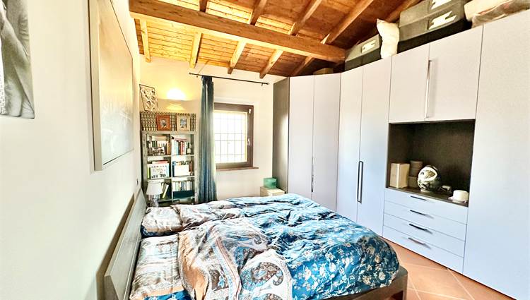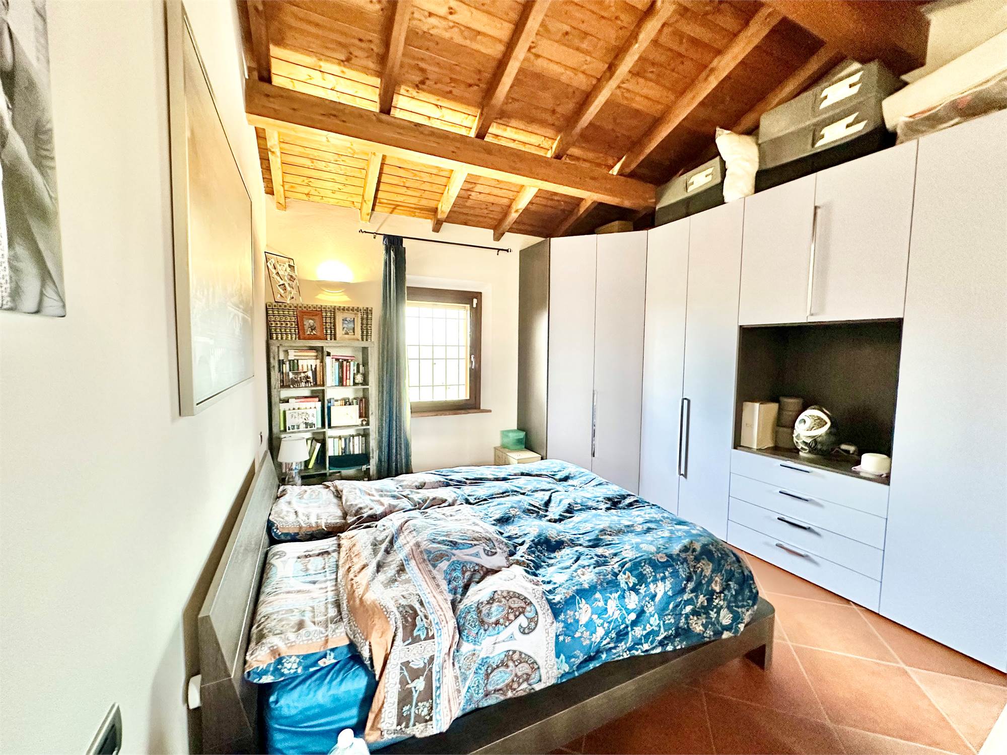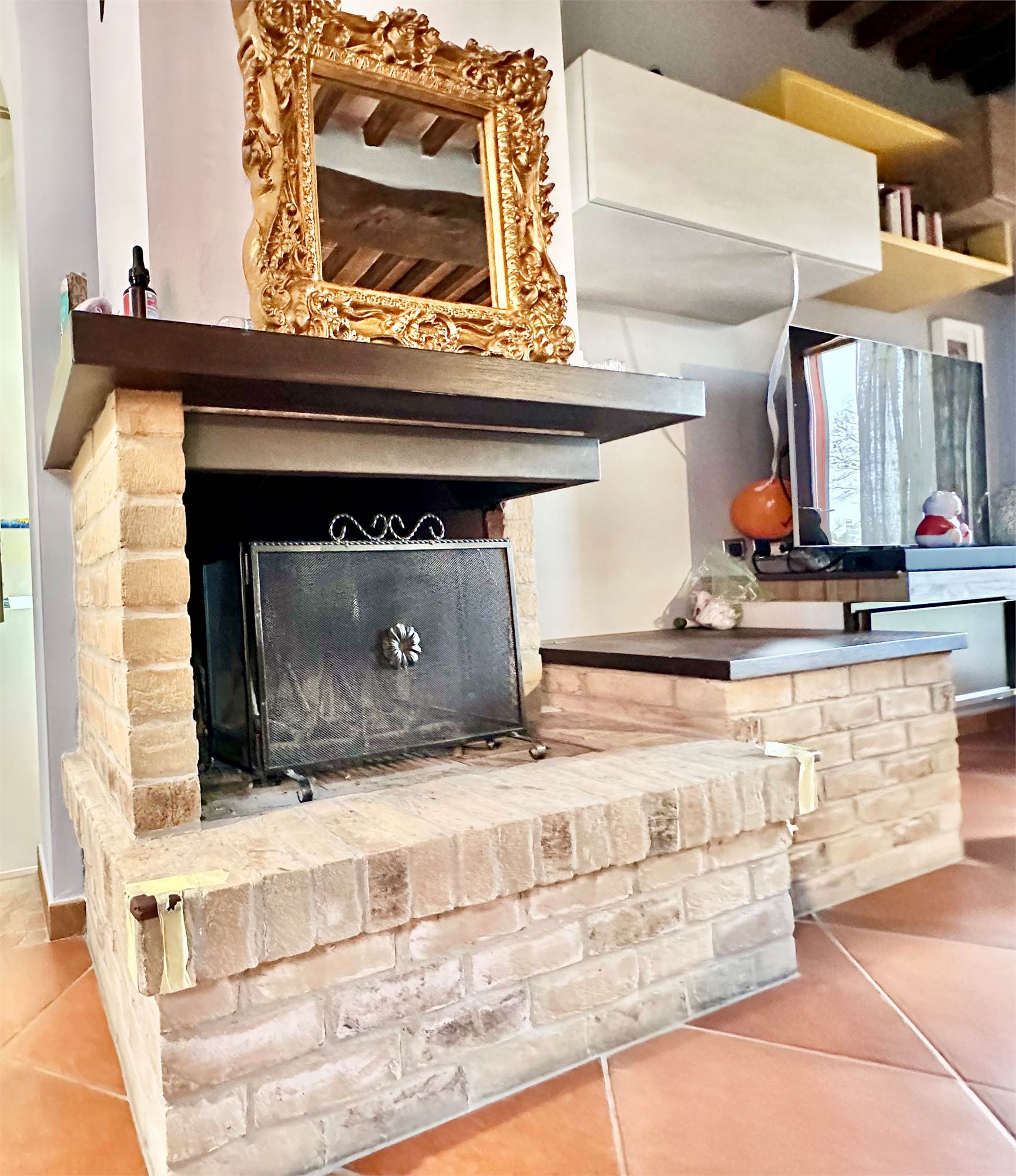 La casa è rifinita con grande attenzione ai dettagli: travi in legno a vista, porte scorrevoli di design, porta blindata, inferiate, zanzariere e camino.