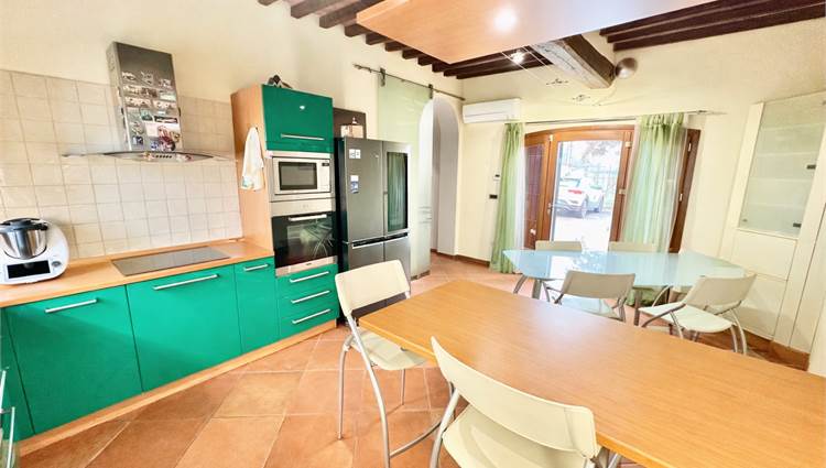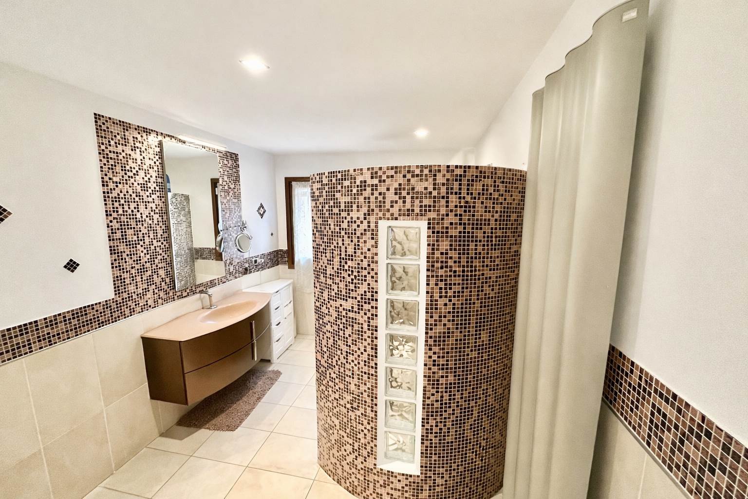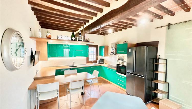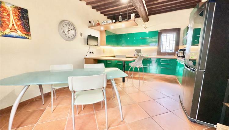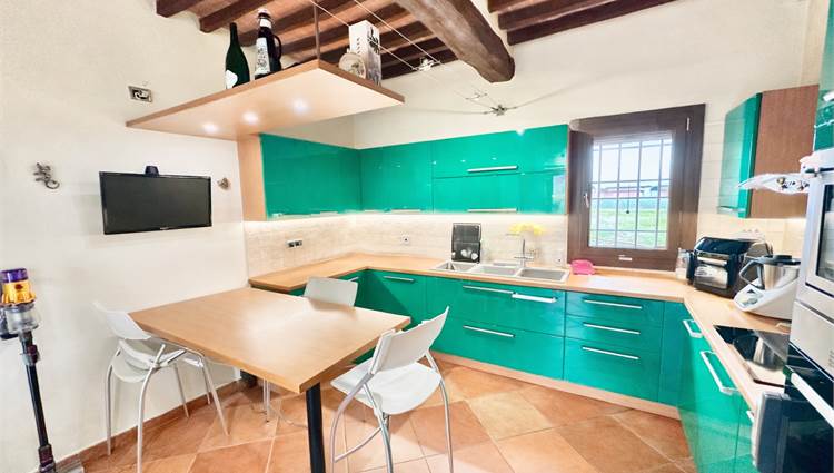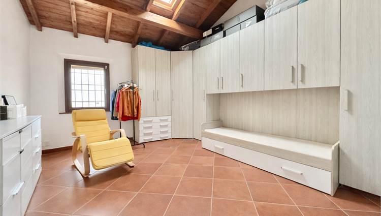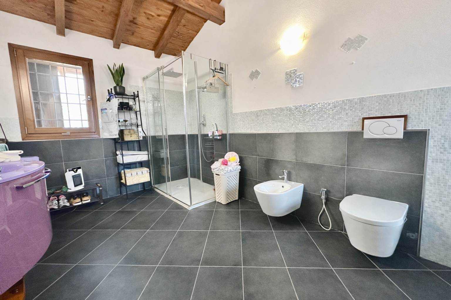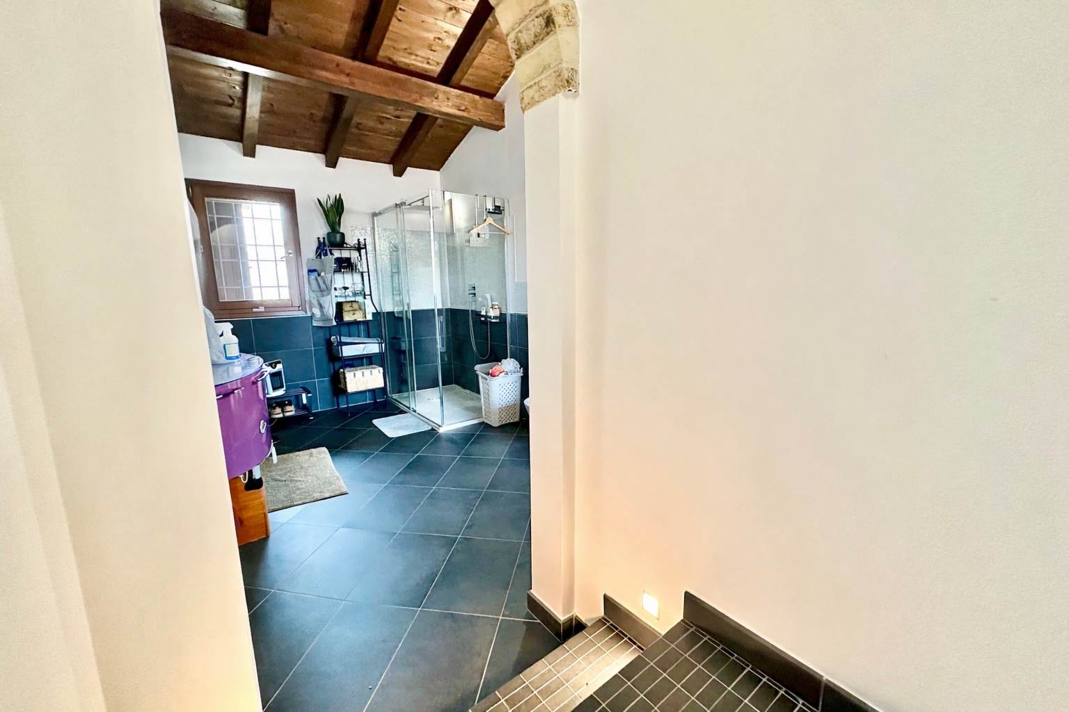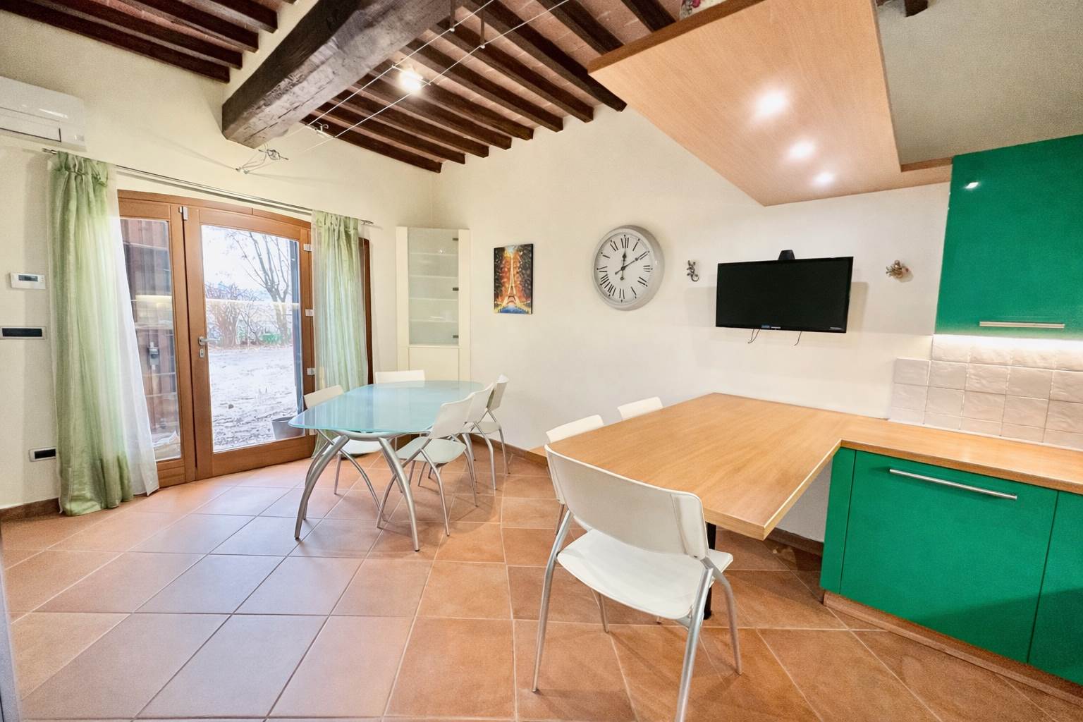 La casa è rifinita con grande attenzione ai dettagli: travi in legno a vista, porte scorrevoli di design, porta blindata, inferiate, zanzariere e camino.
