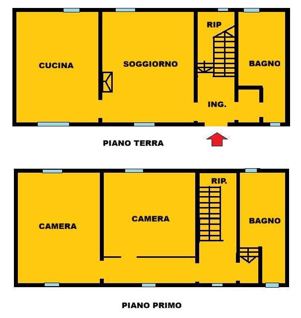 Piano primo: 2 camere matrimoniali, Ampio bagno finestrato e ripostiglio.