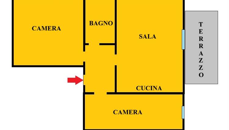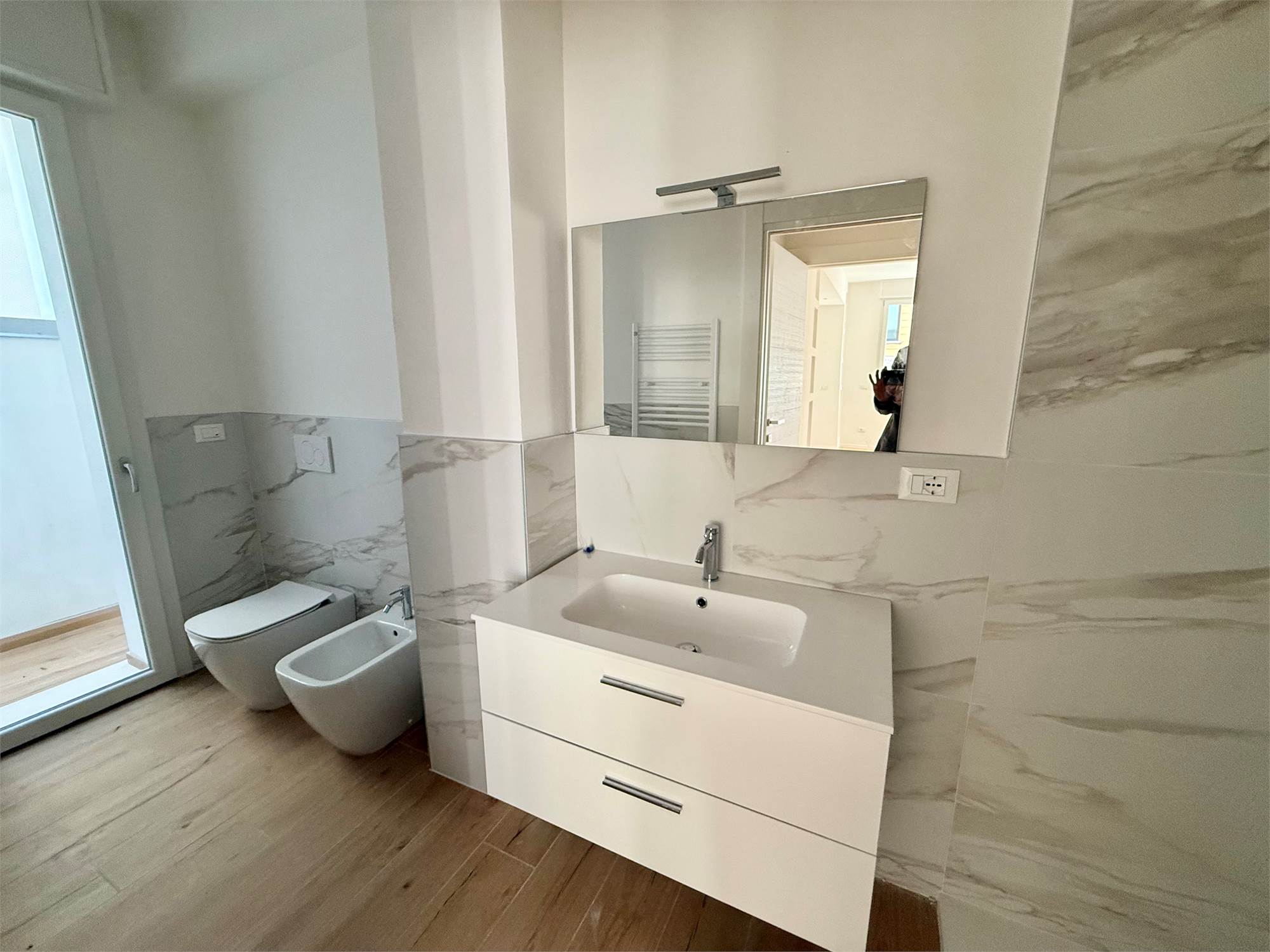 UNITA' 7: Appartamento sito al secondo ed ultimo piano, composto da ingresso, sala con cucina a vista ed accesso al terrazzo di 12 mq, 2 camere da letto, bagno finestrato e cantina ciclabile. 2 affacci esterni e 5 finestre, donano grande luminosità all' appartamento.