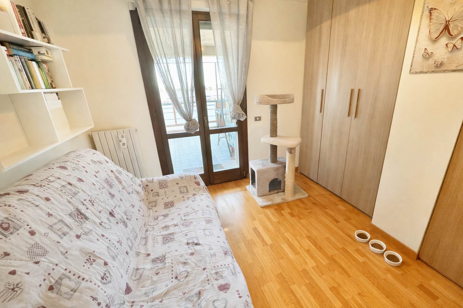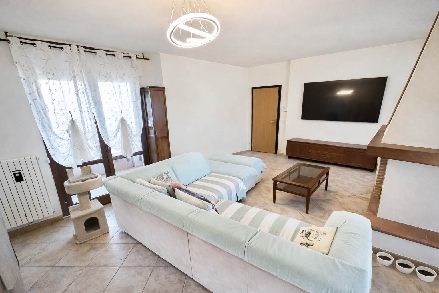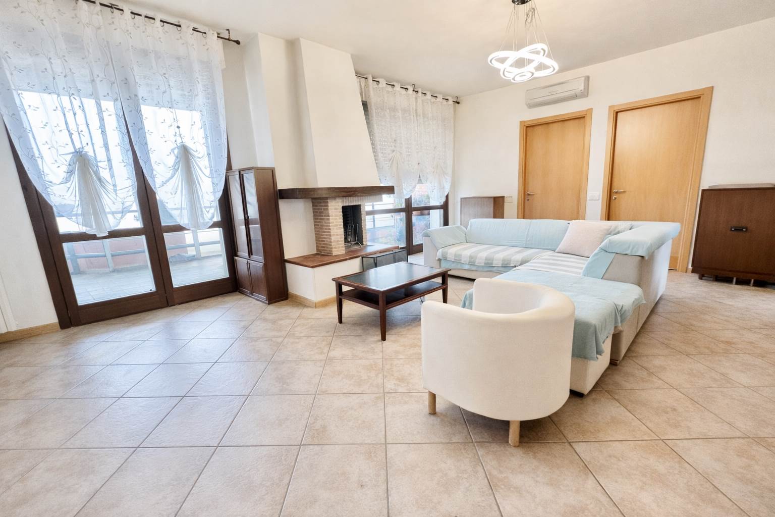 Finiture: Riscaldamento autonomo, climatizzatore, porta blindata, video citofono, camino, sanitari sospesi, parquet zona notte, infissi in legno con vetrocamera, predisposizione impianto d'allarme.