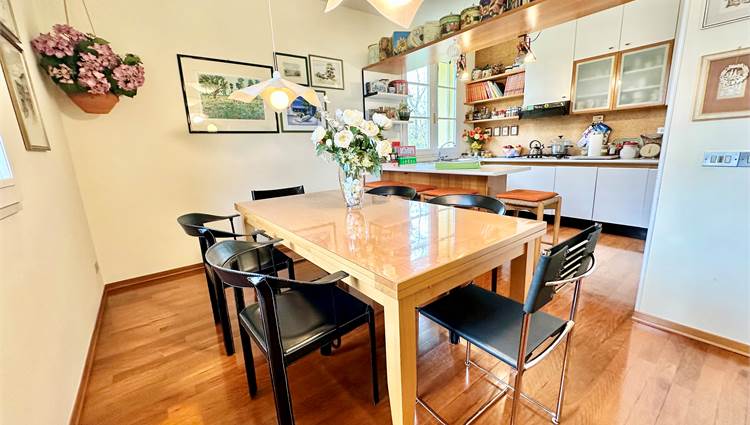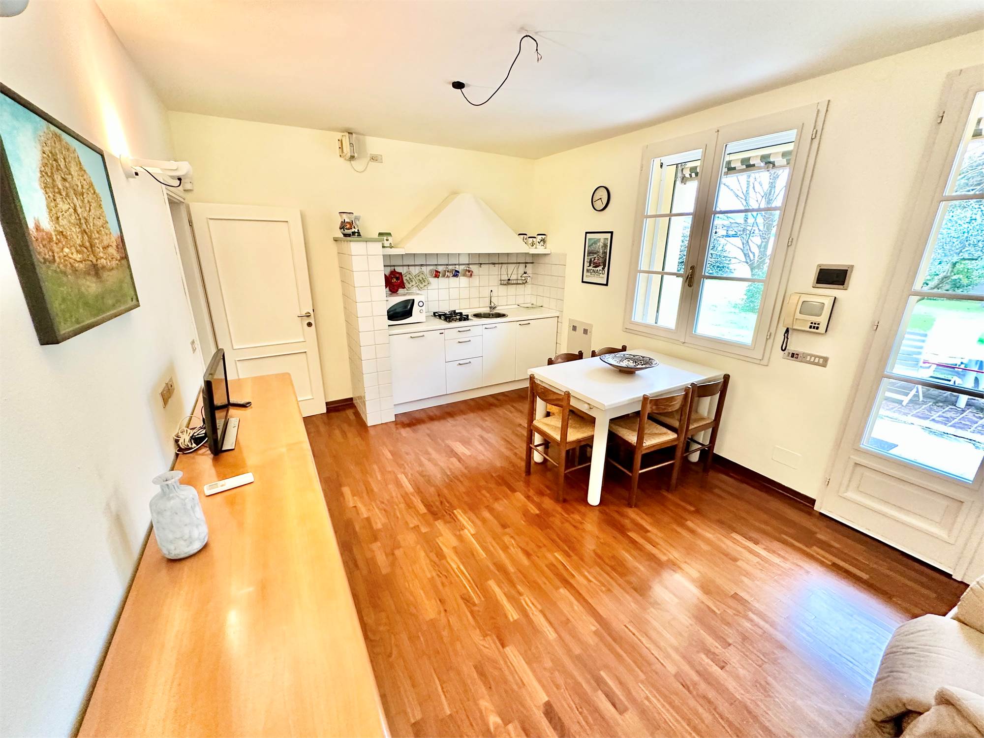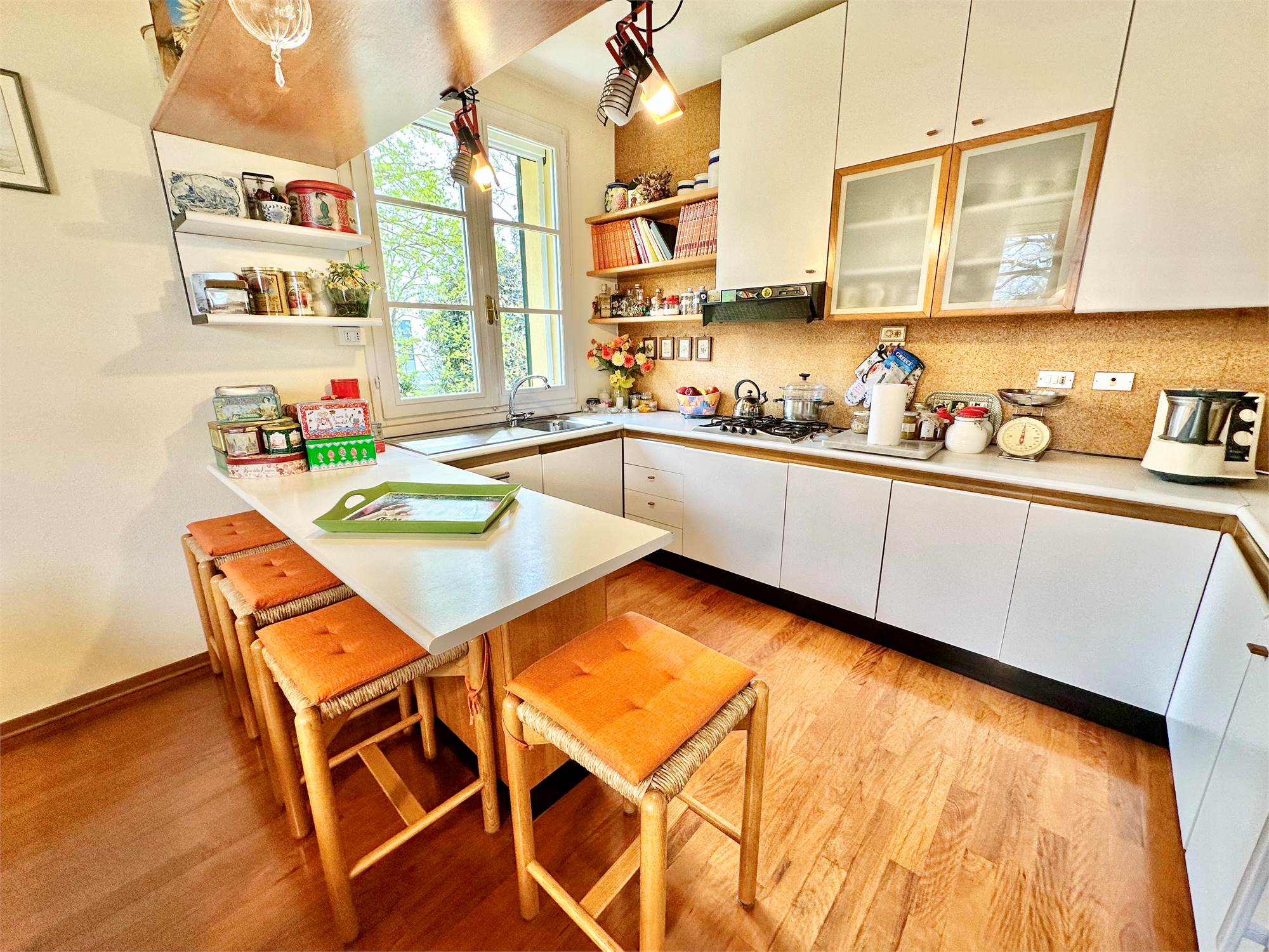 Riscaldamento autonomo, climatizzazione, addolcitore, impianto di allarme con videosorveglianza, parquet, scuri e infissi con vetrocamera.