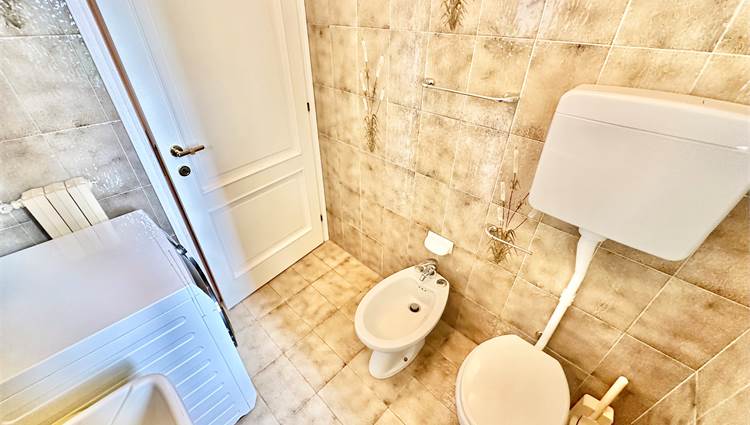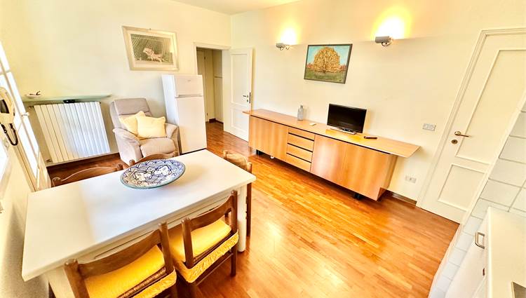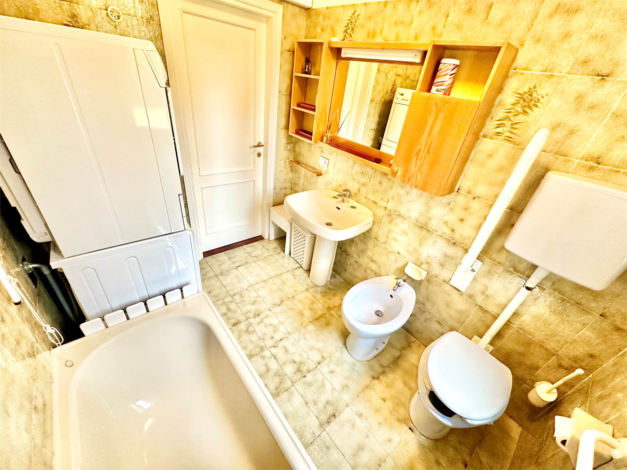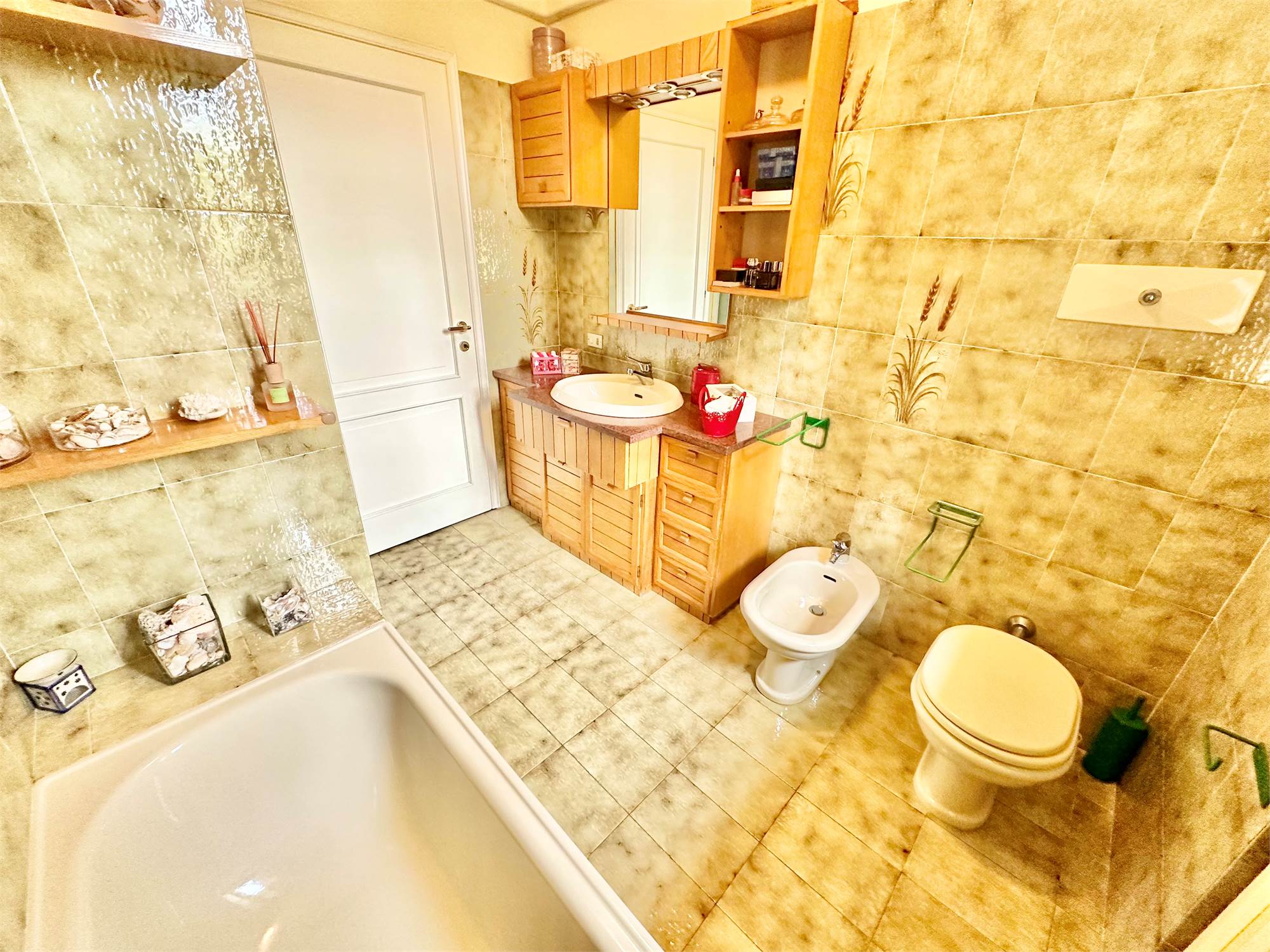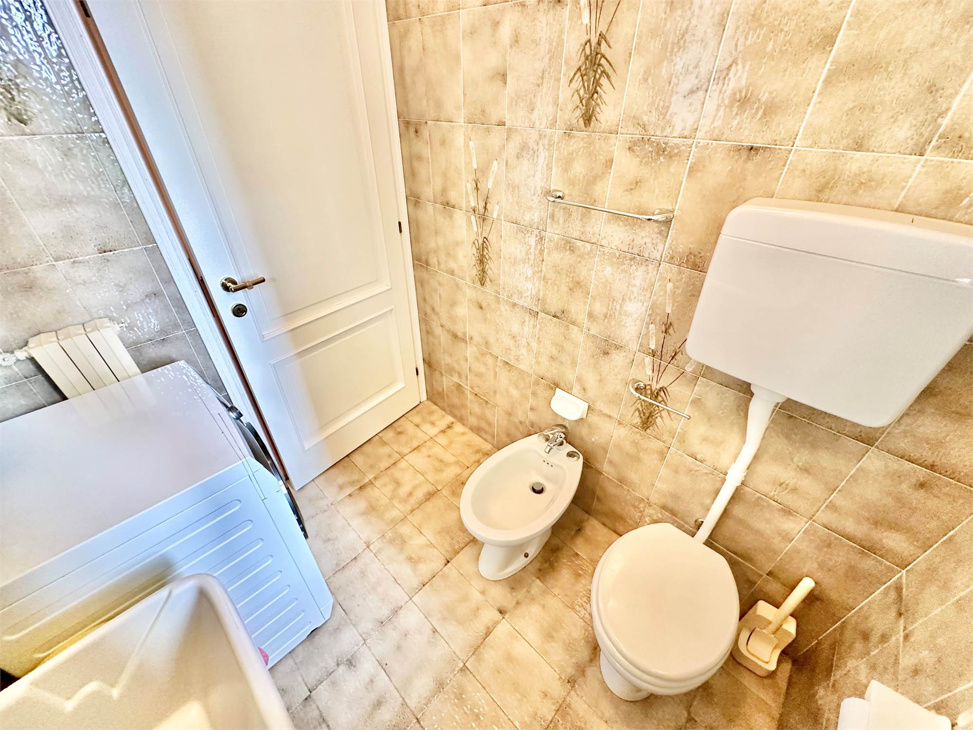 Ingresso, soggiorno, cucina abitabile, camera, 2 bagni e ripostiglio.