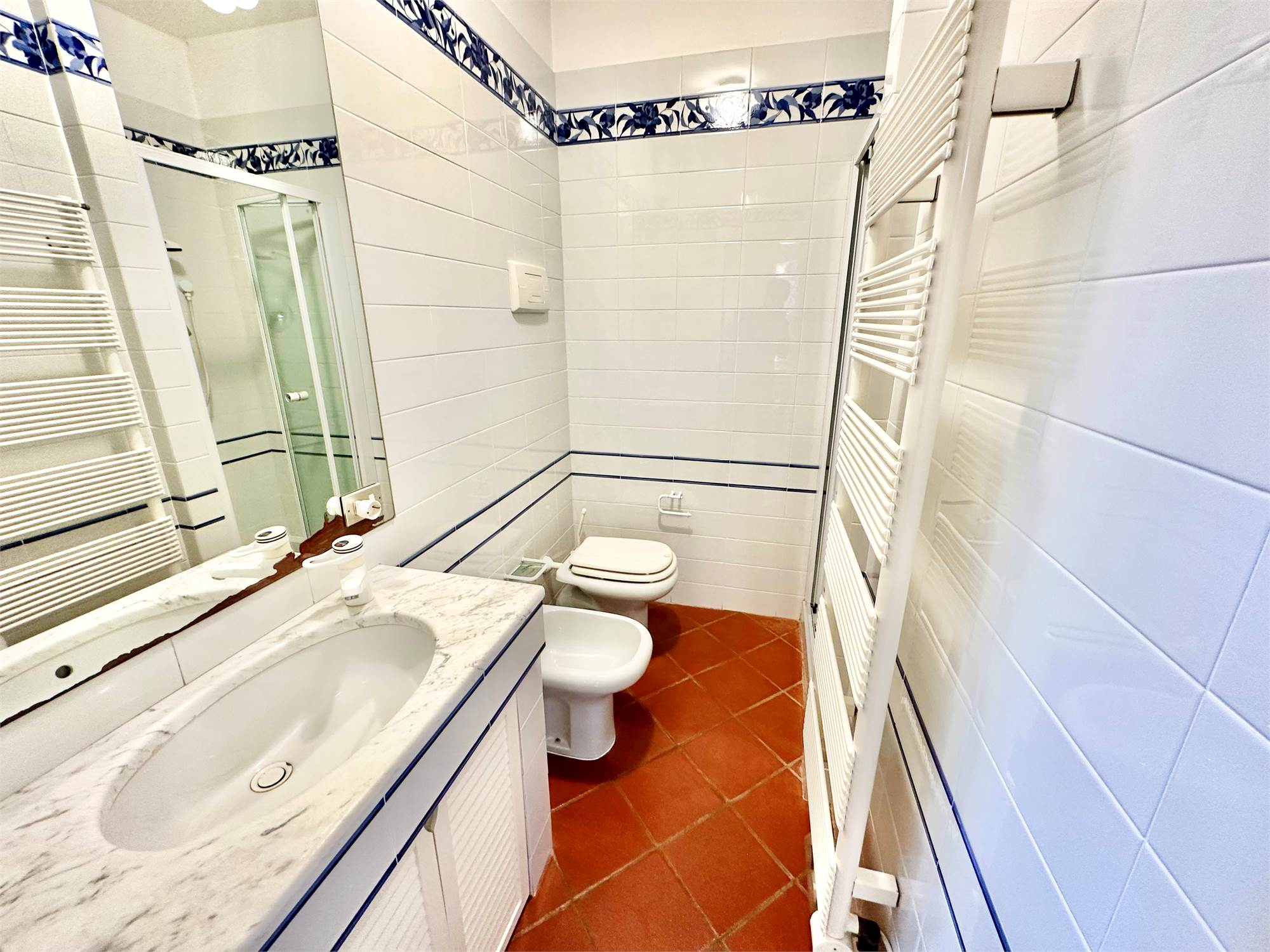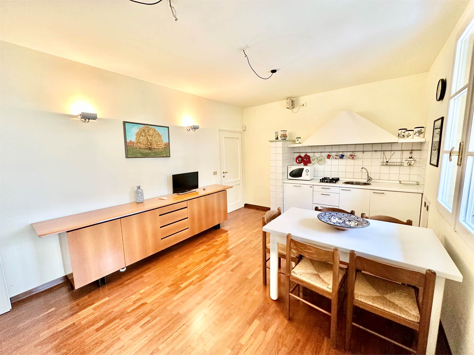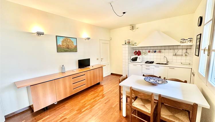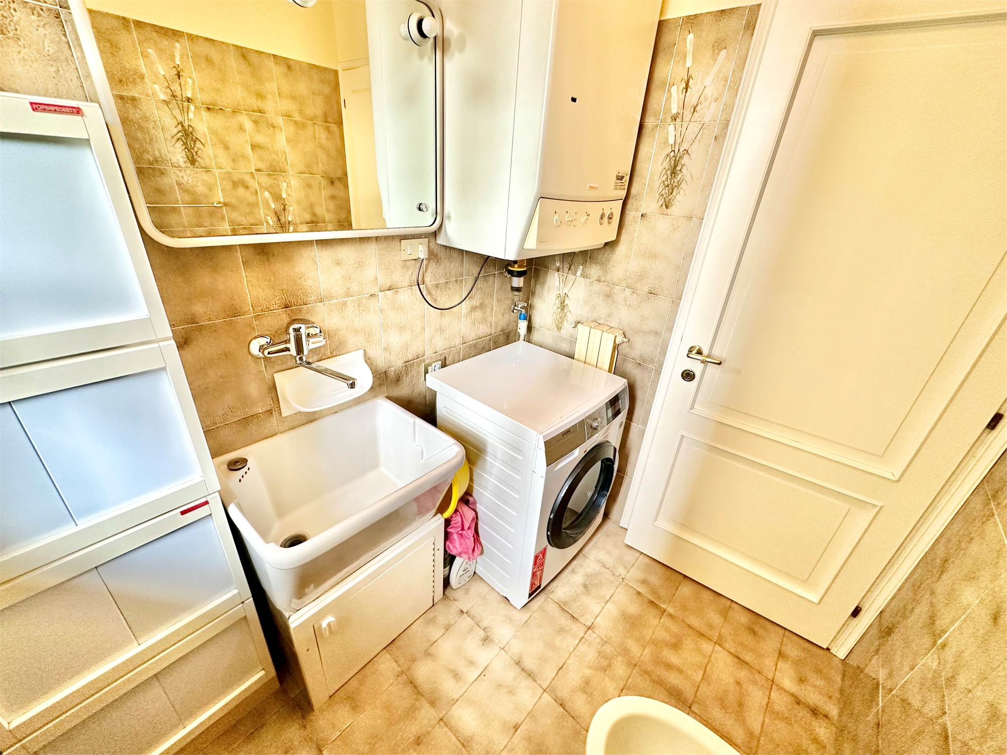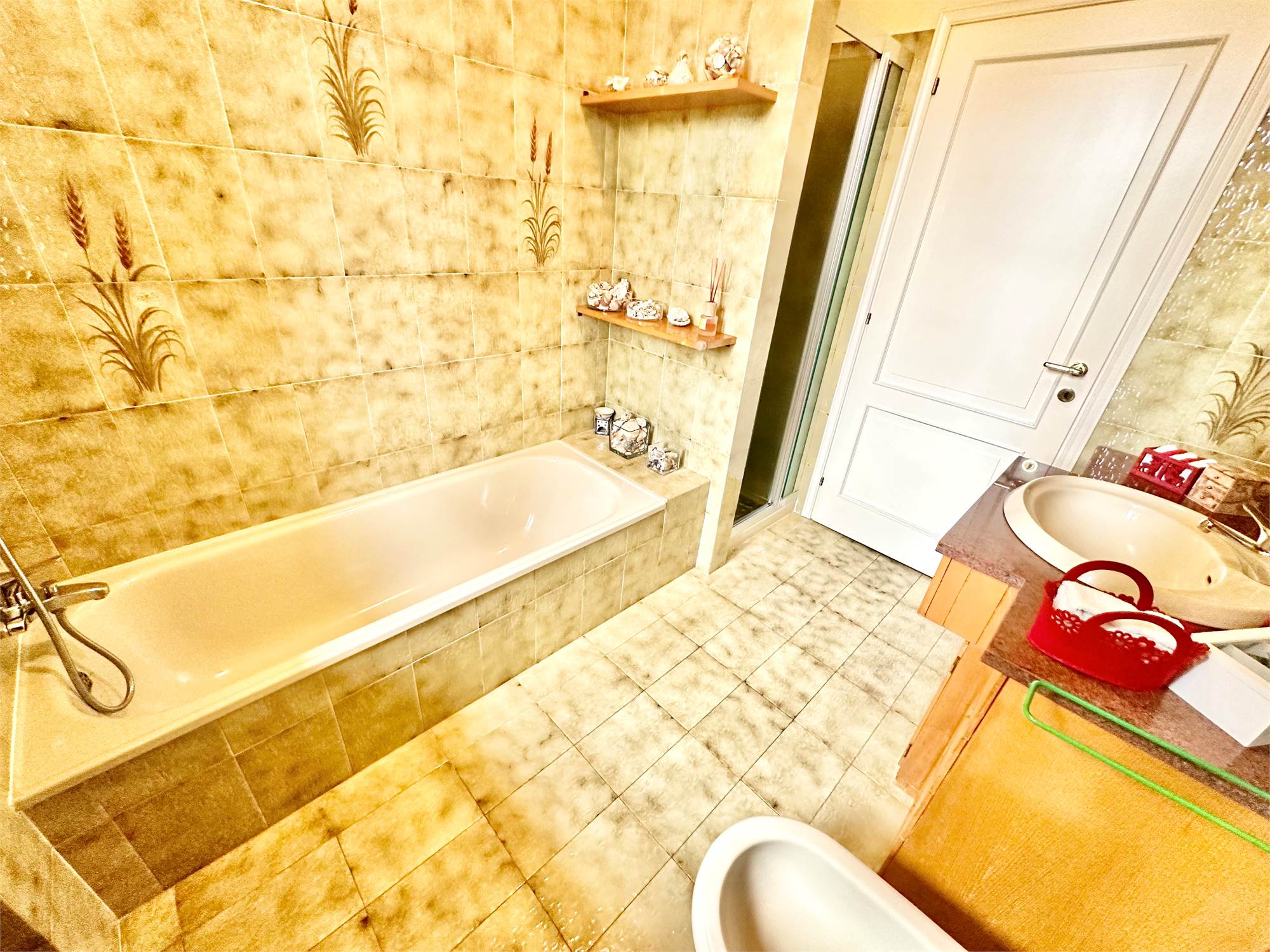 Ingresso, soggiorno, cucina abitabile, camera, 2 bagni e ripostiglio.