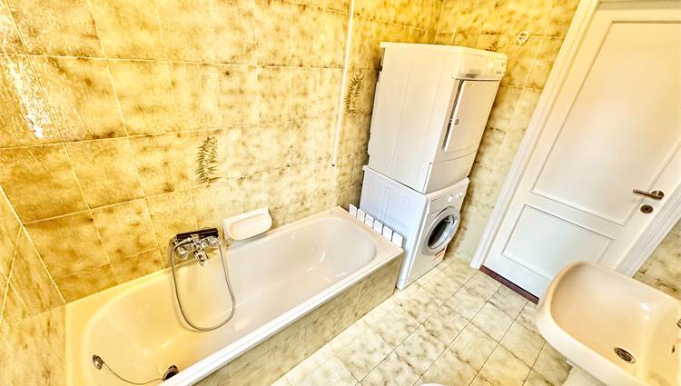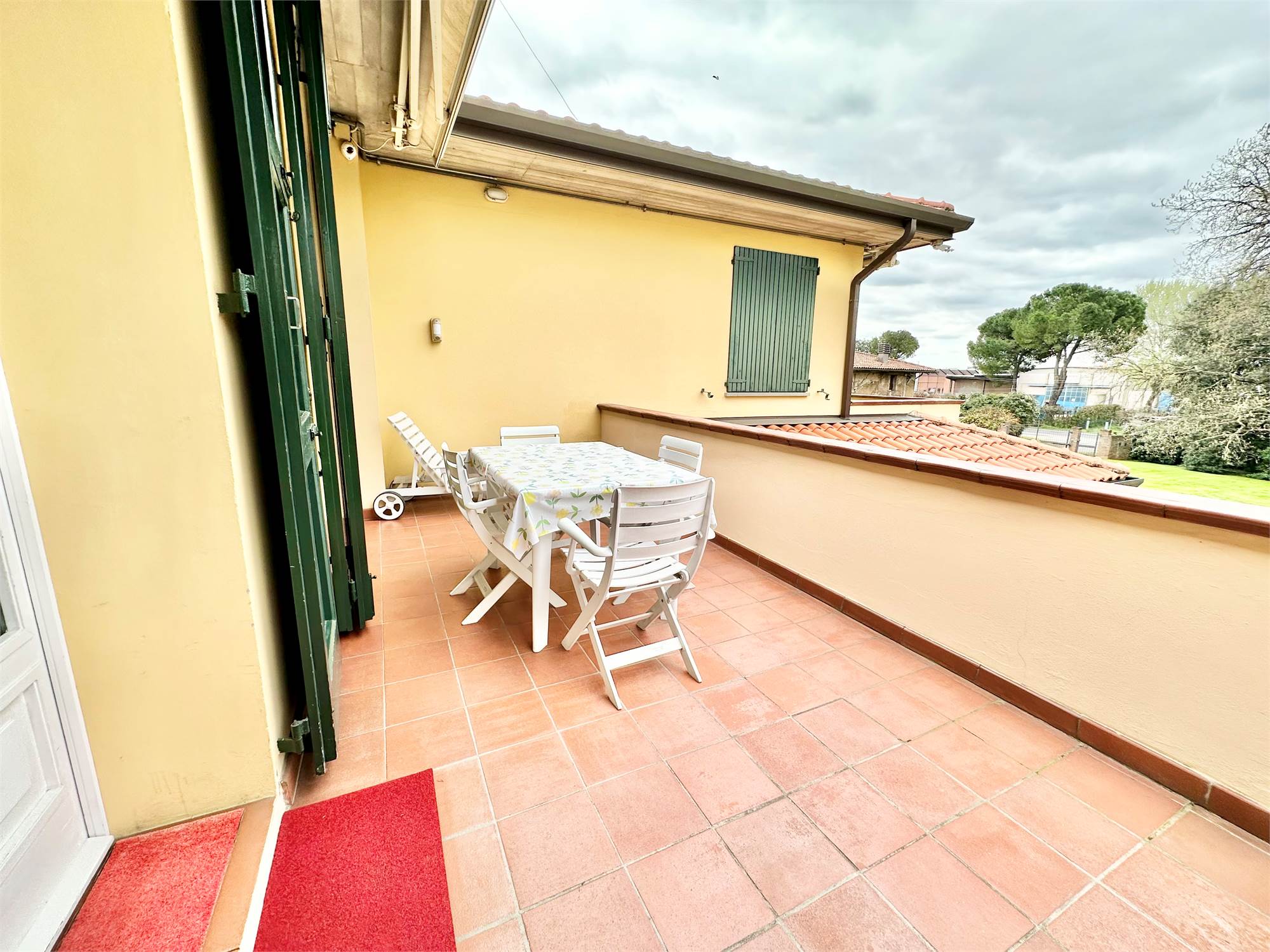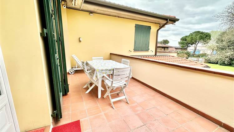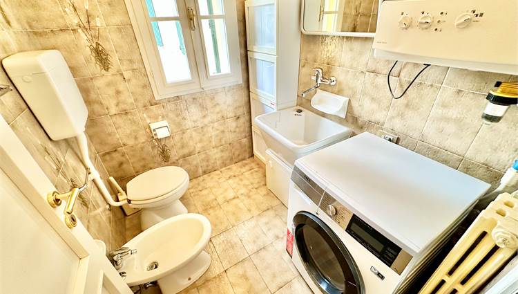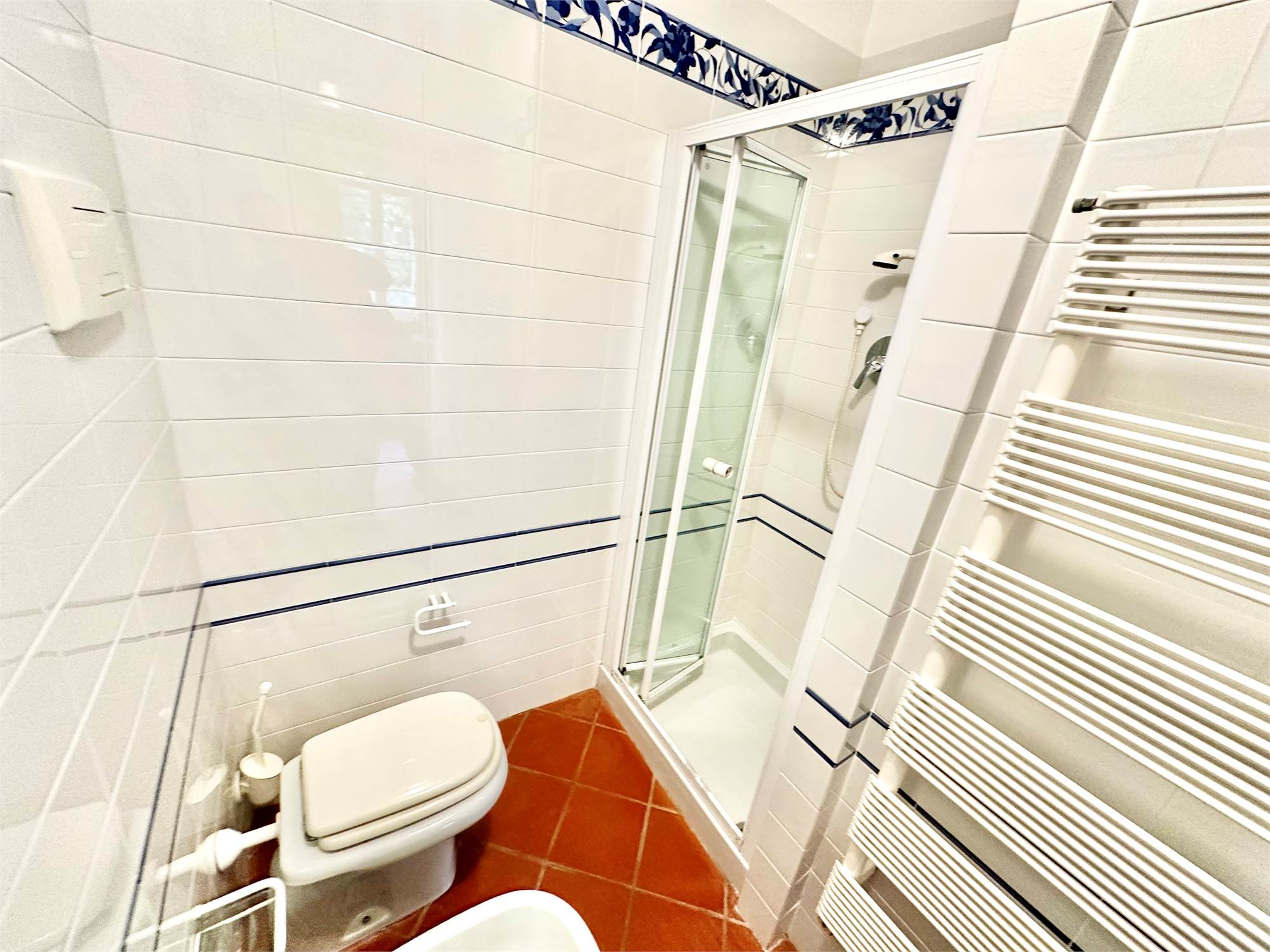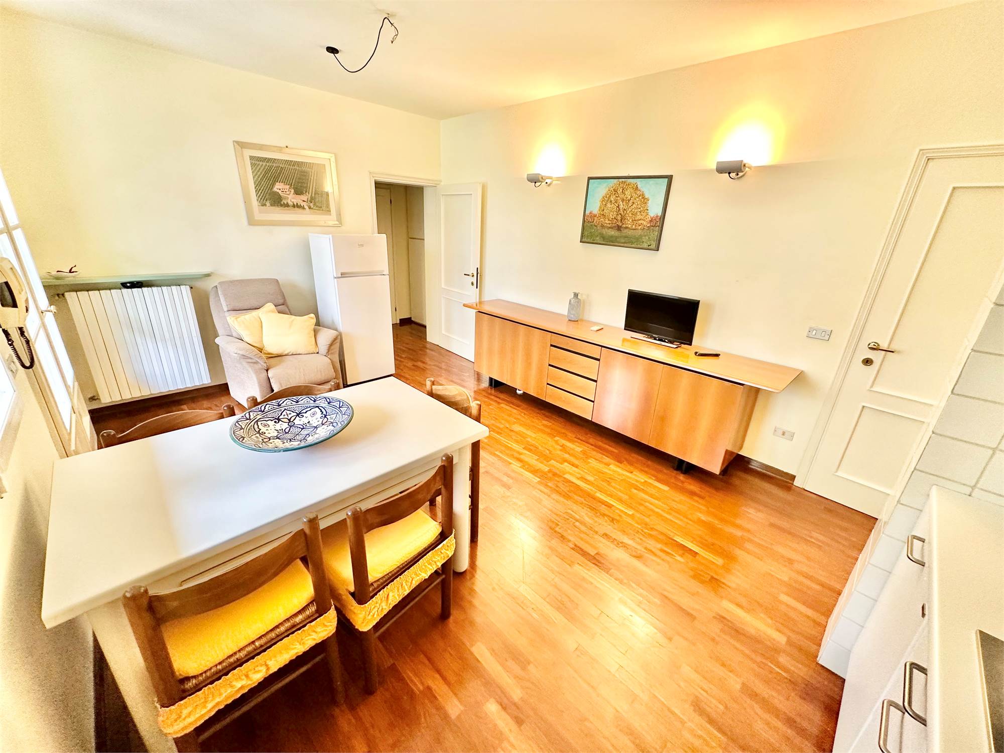 Ingresso, soggiorno, cucina abitabile, camera, 2 bagni e ripostiglio.