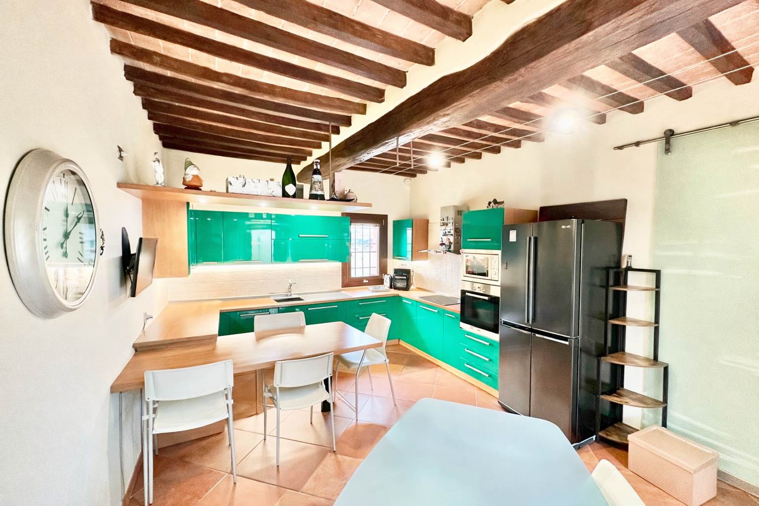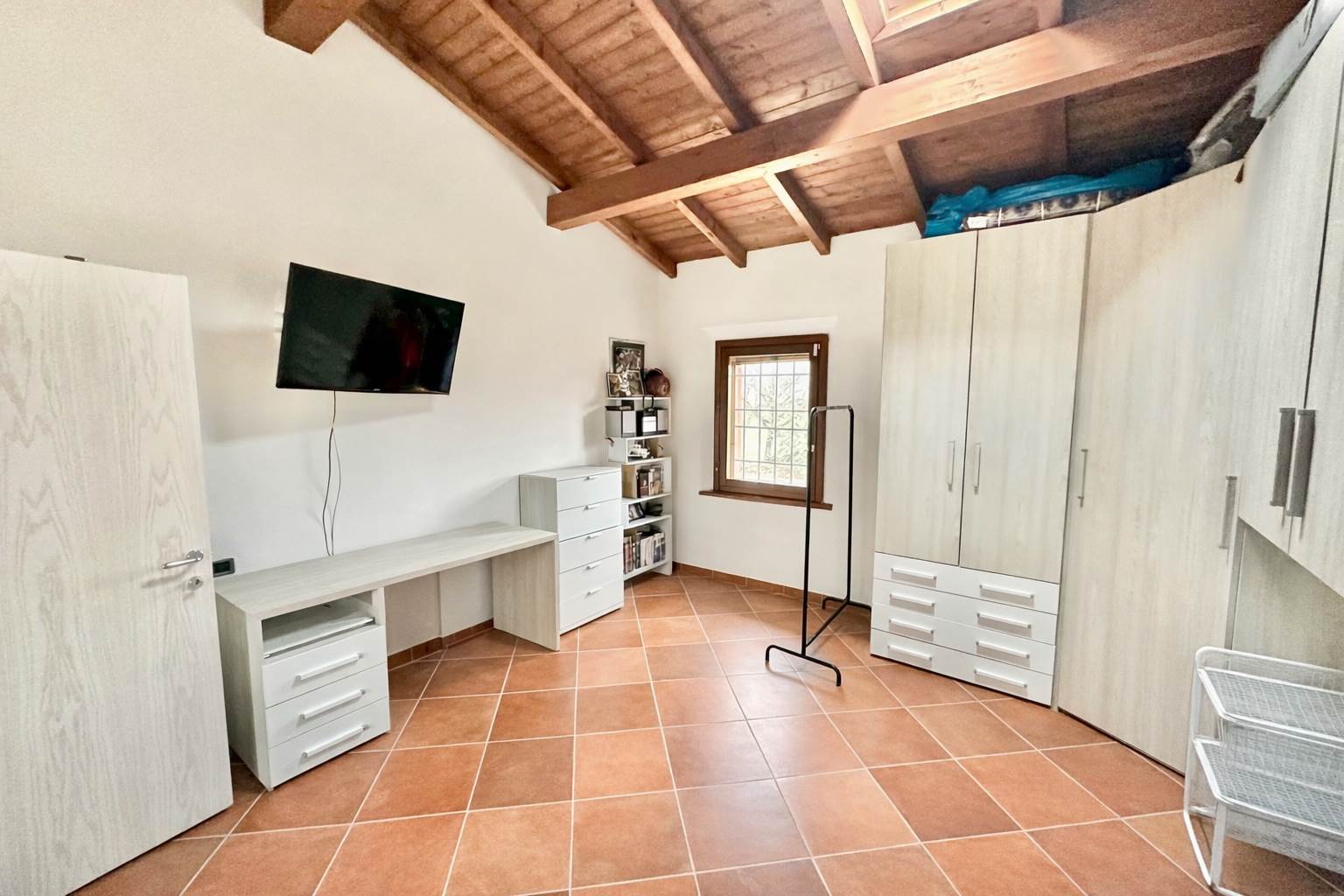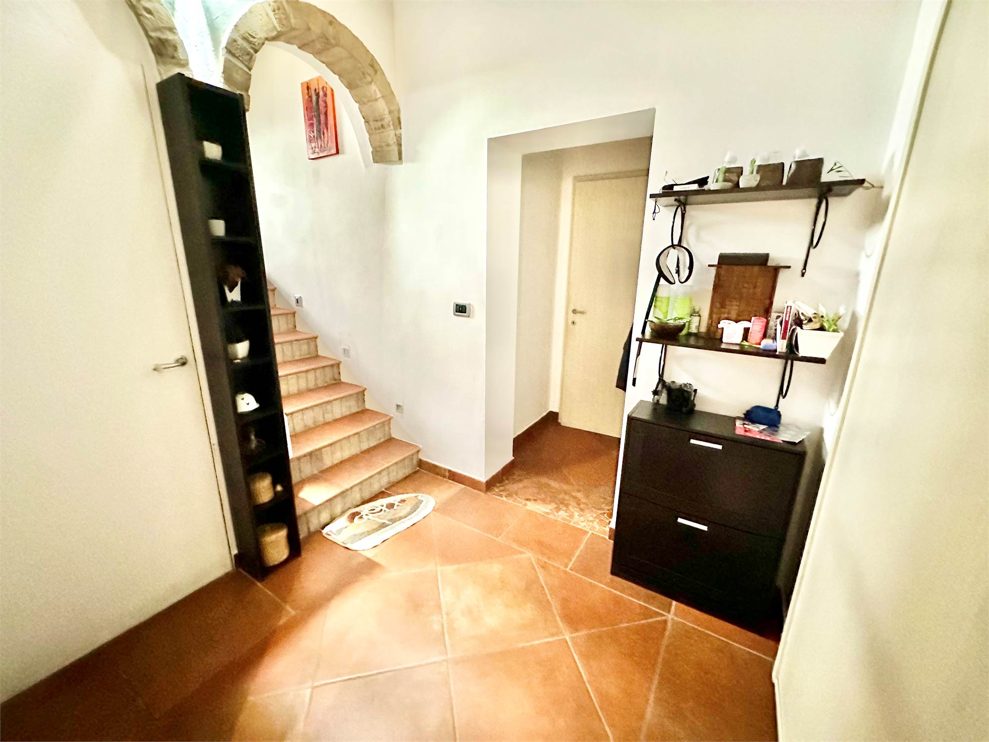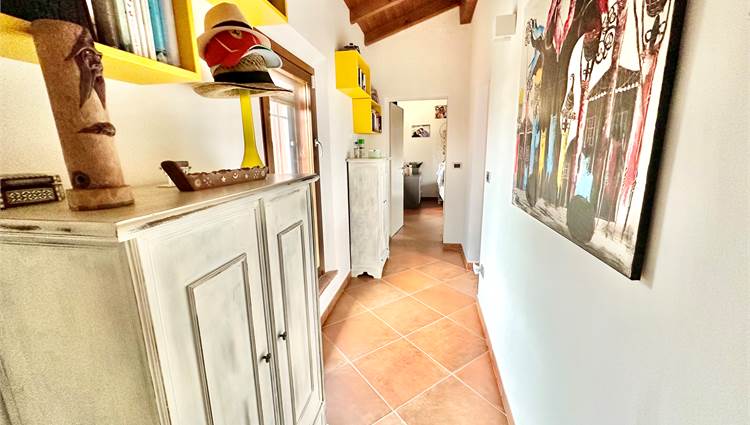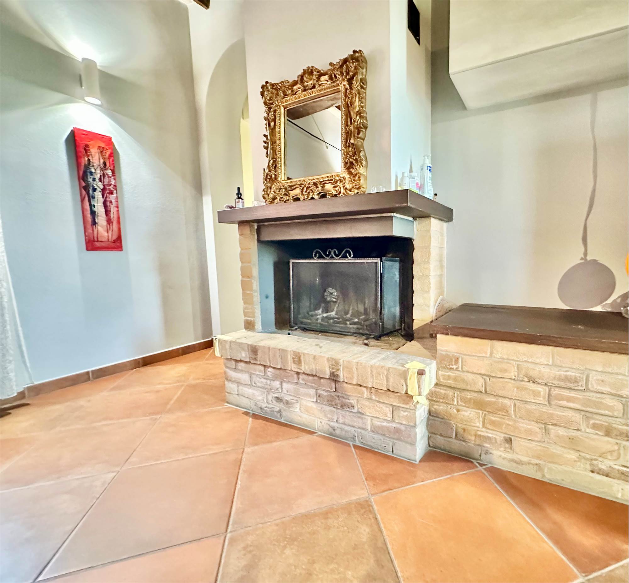 La casa è stata ristrutturata con grande attenzione ai dettagli: travi in legno a vista, porte scorrevoli di design, porta blindata, inferiate, zanzariere e camino.