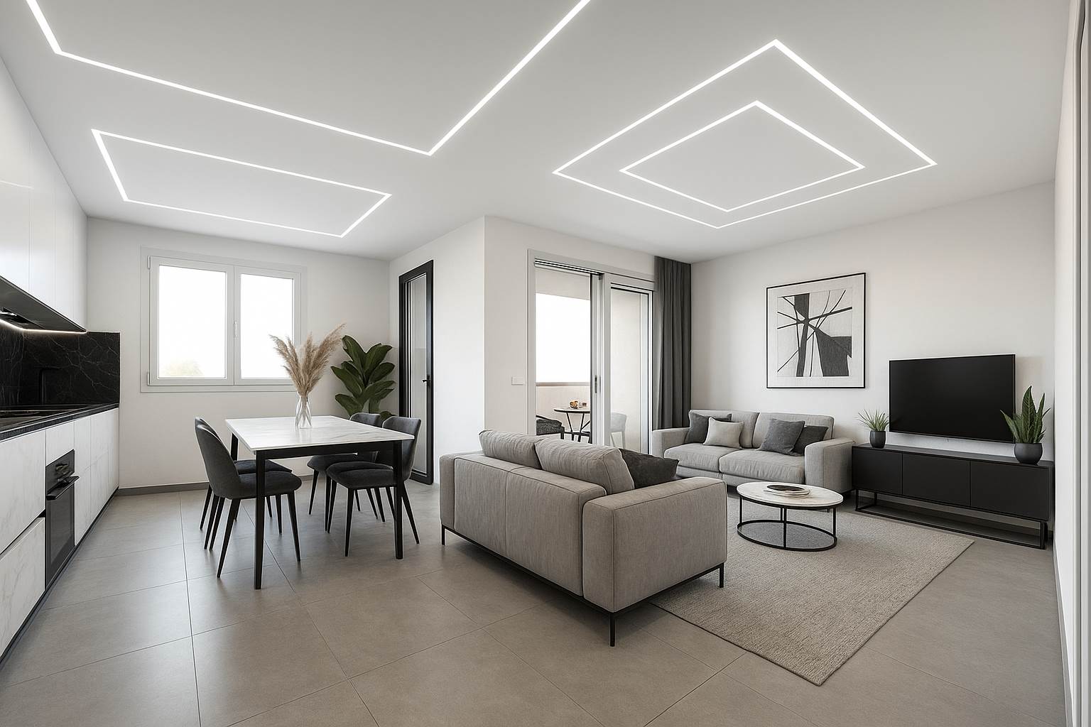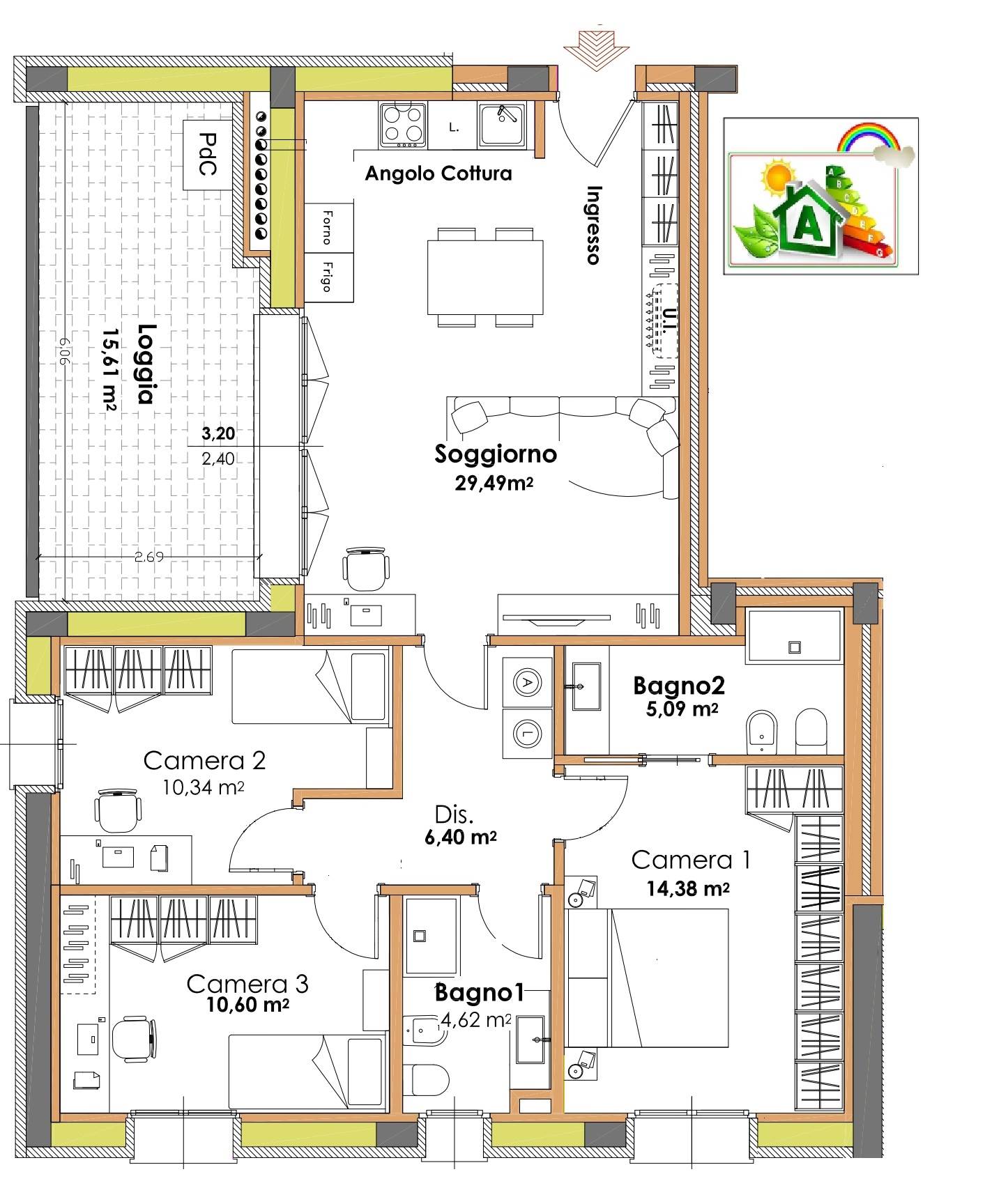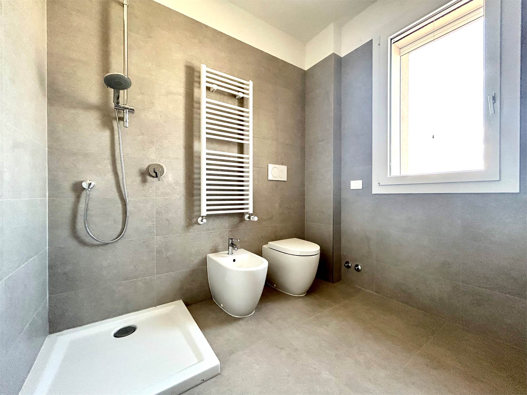 NO ONERI DI MEDIAZIONE A CARICO ACQUIRENTE. Classe energetica A o superiore, parapetti terrazze in muratura per maggiore privacy, pannelli fotovoltaici, impianti riscaldamento autonomi con pompa di calore aria acqua per gestire riscaldamento acqua calda e fredda, tapparelle motorizzate in alluminio con cassonetto ad incasso nella muratura, predisposizione impianto raffrescamento idronico funzionante con la pompa di calore installata, predisposizione impianto allarme perimetrale, pavimentazione in gres porcellanato formati fino a 60x60 cm effetto legno 20x120 cm, sanitari posati filo muro/pavimento.