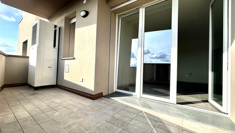 Nuovo appartamento bilocale, al 4° piano con ascensore, molto luminoso esposto a sud/ovest, in palazzina situata nel centro di Ozzano, composto da ingresso su soggiorno con angolo cottura di circa 25 mq calpestabili, disimpegno arredabile con zona ripostiglio, camera da letto, bagno e terrazza abitabile di 11 mq per pranzare all'aperto. A parte cantina e garage al piano interrato con possibilità di scelta.
